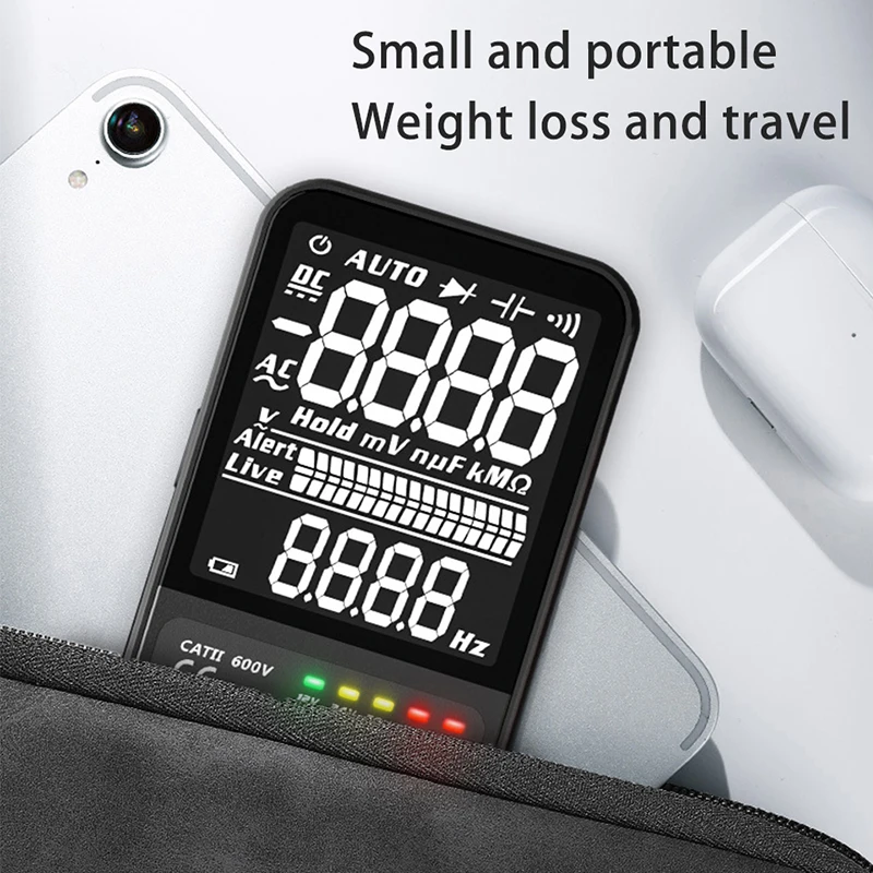 [Дизайн размера телефона]: супертонкий корпус и размер кармана делают его похожим на настоящий телефон. Идеально подходит для ежедневного самостоятельного использования, использования учителями или модное украшение.[Большой экран 3 линии дисплея]: большой экран тройной линии дисплея может показать 3 результаты тестирования на экране, такие как напряжение, частота и аналоговый бар.[Автоматическая идентификация]: Автоматическая идентификация позволяет не переключаться при тестировании напряжения переменного/постоянного тока, Гц, непрерывности и сопротивления.[Дизайн фонарика]: дизайн фонарика делает измерение более эффективным. Конструкция подвесного отверстия делает его более портативным.[Дизайн Unibody]: дизайн Unibody, нет необходимости подключать и выключать зонды, которые не только могут сэкономить время обучения и тестирования, но и предотвратить неправильное включение портов, который может сжечь мультиметр.