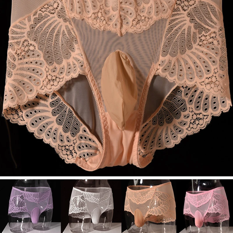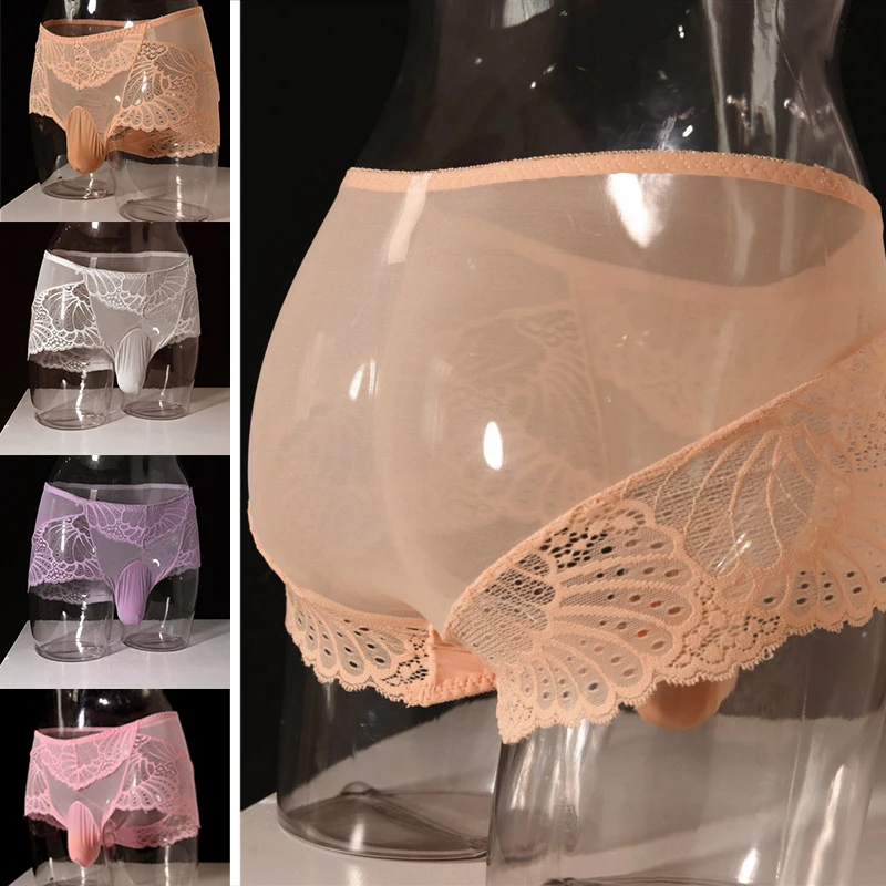 Мужские трусы, кружевные прозрачные трусы, U-образный выпуклый карман, бесшовное нижнее белье, дышащее сексуальное нижнее белье с низкой посадкой