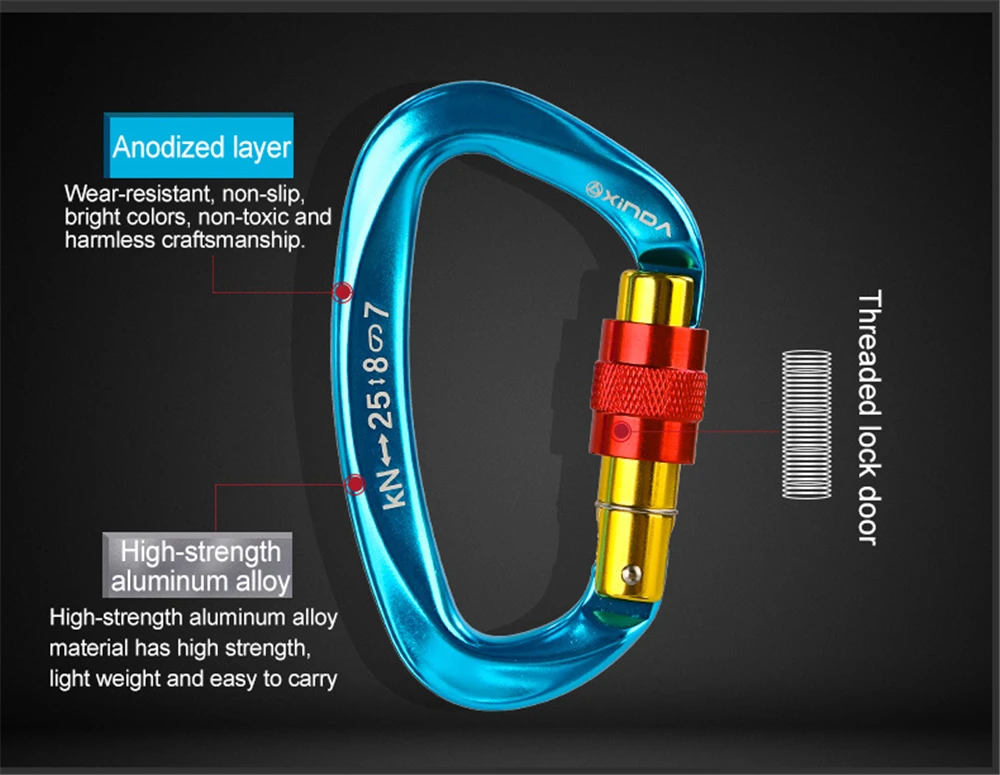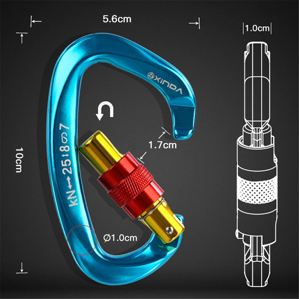 25KN Открытый Карабин Для Скалолазания из сплава алюминия D форма безопасности Пряжка профессиональная снаряжение для выживания снаряжение для альпинизма