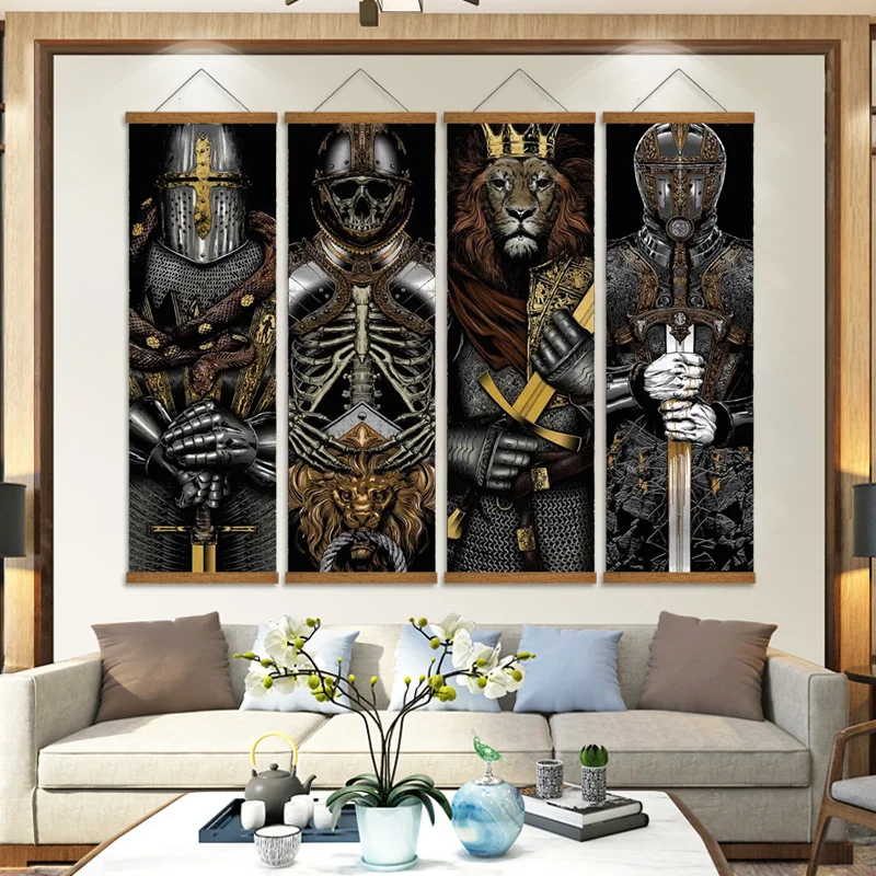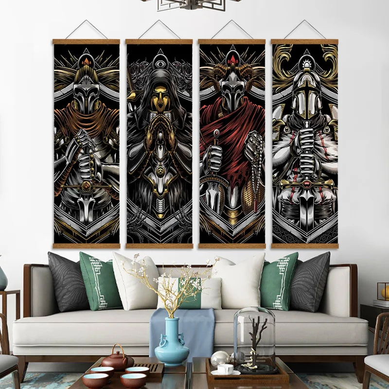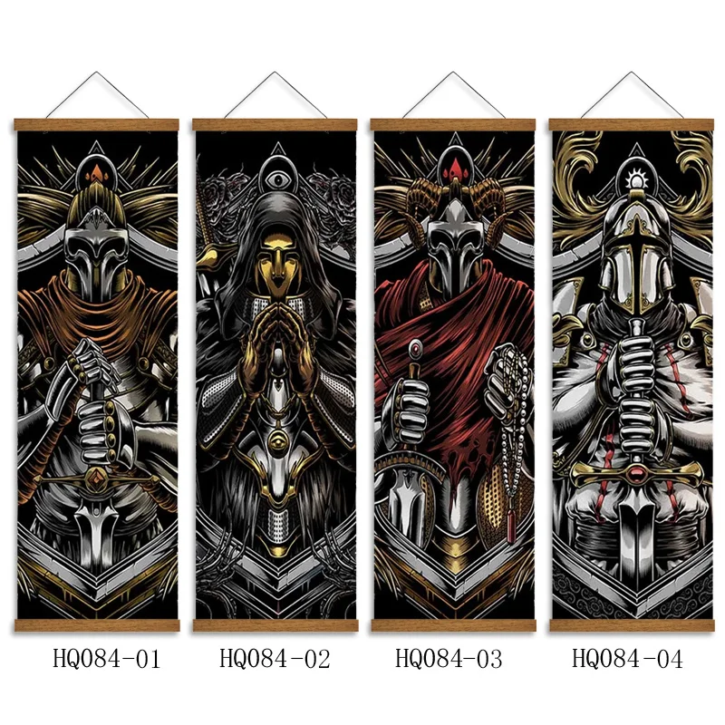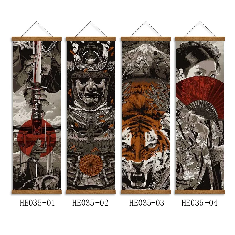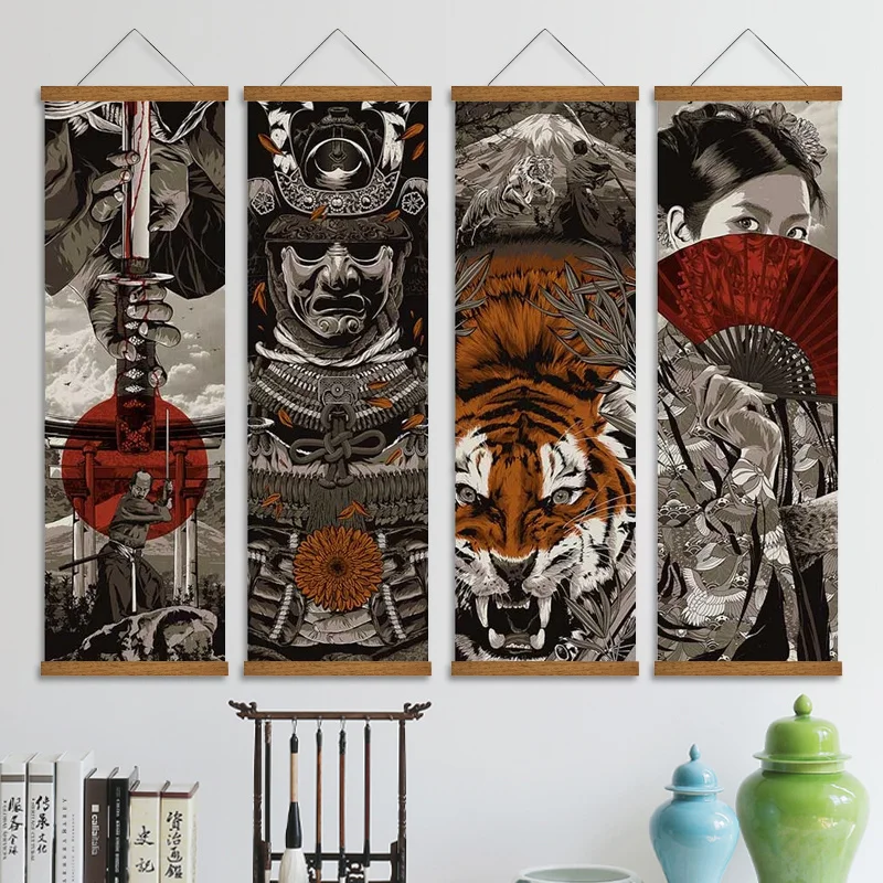 Японский самурай укийой, тигр, холст, постер, картины для гостиной, домашний Декор, живопись, настенное искусство с твердой древесиной, висячий свиток
