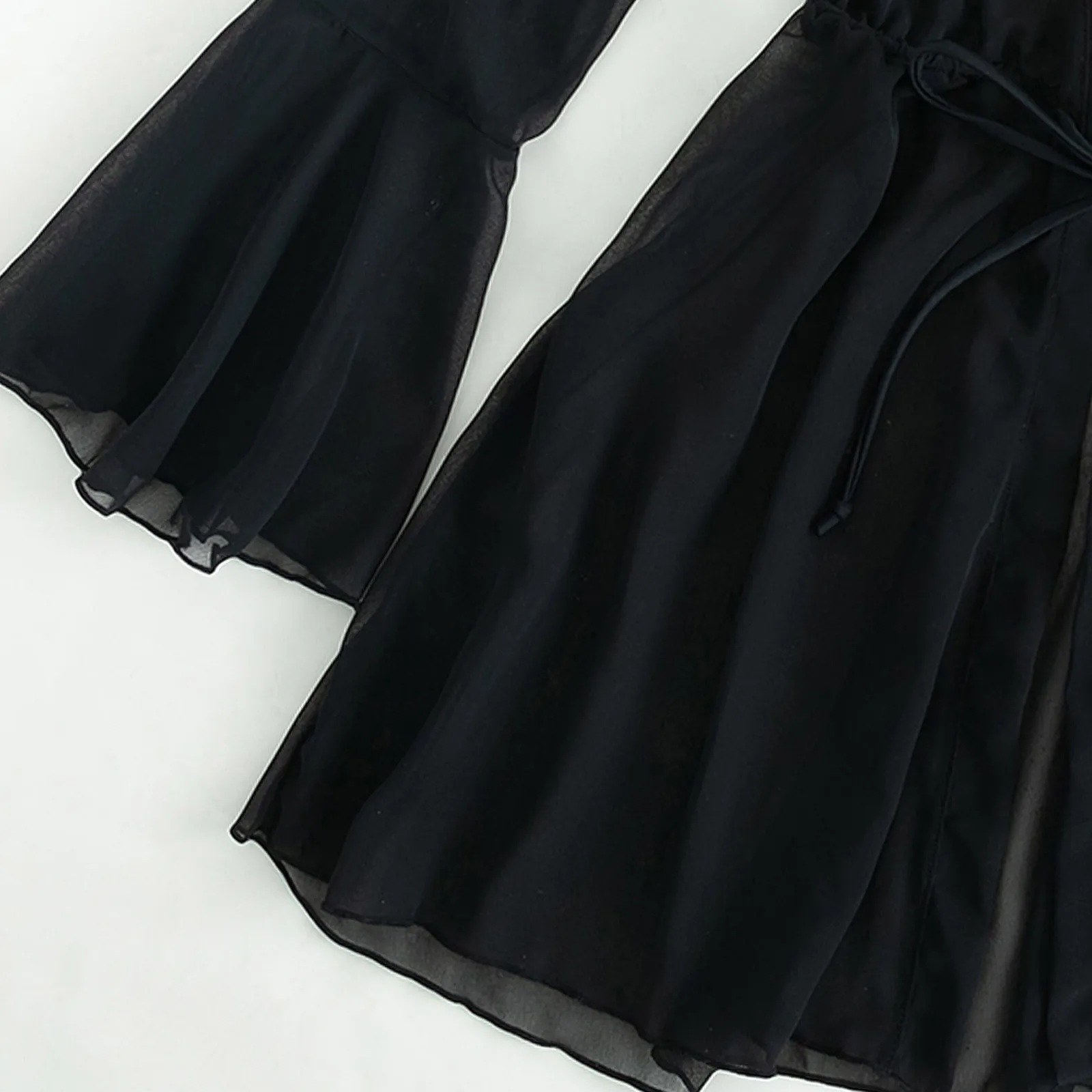 Женское шифоновое кимоно, черный пляжный кардиган с прозрачной наки...