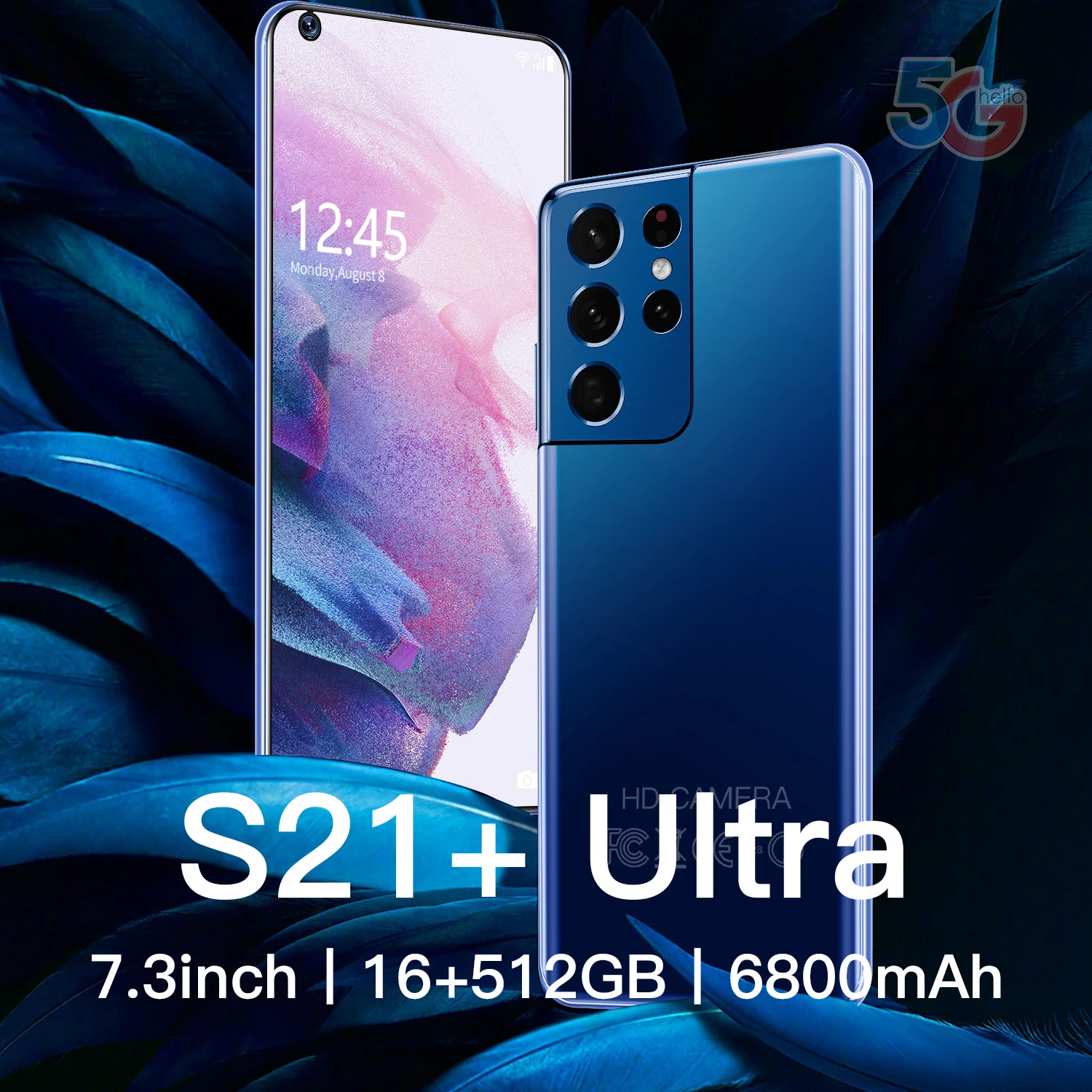 Смартфон S21 Ultra, 7,3 дюйма, Android 10,0, 16 + 512 ГБ