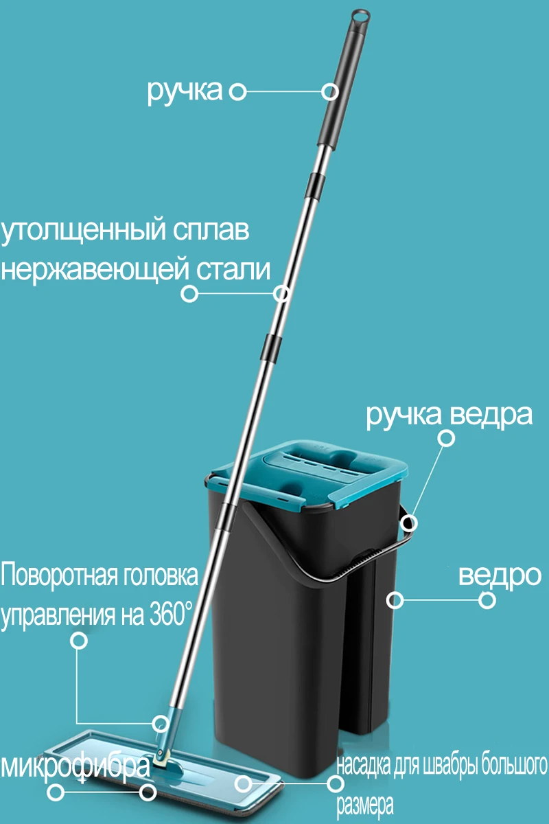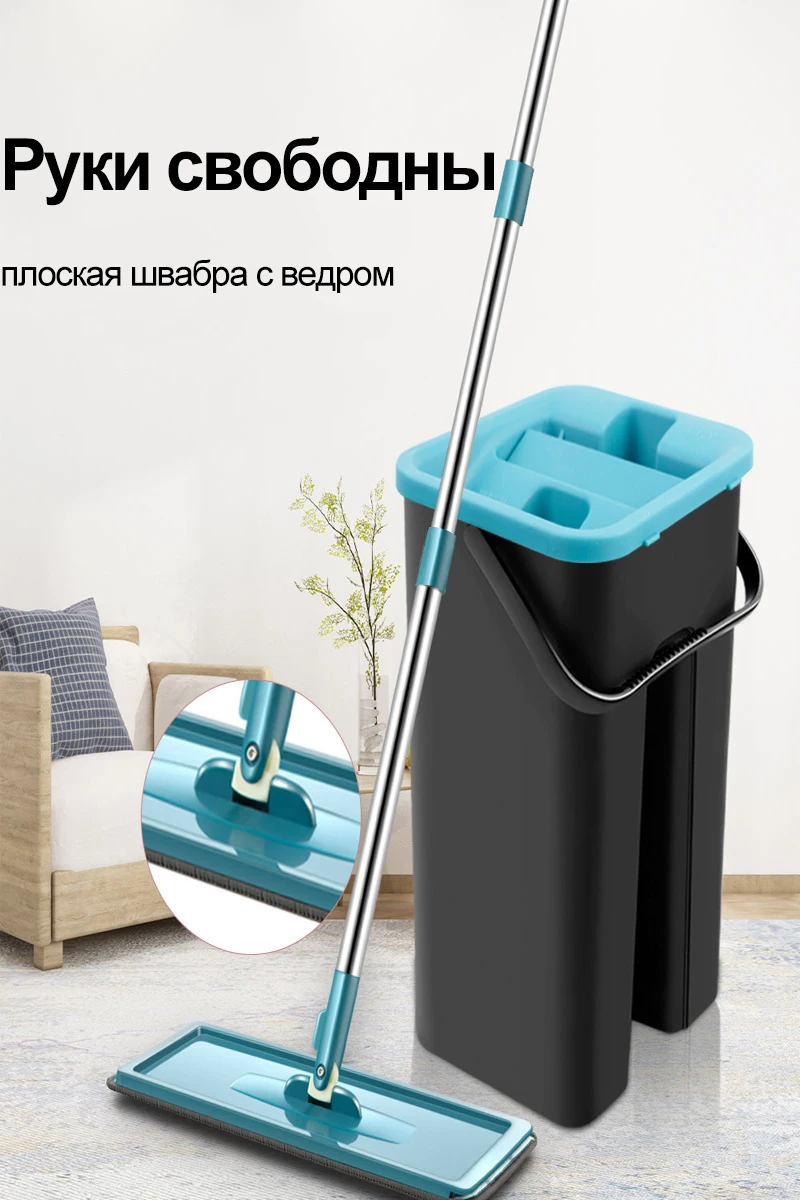 Плоская швабра с ведром Очистка с вращением на 360 градусов Швабра ...