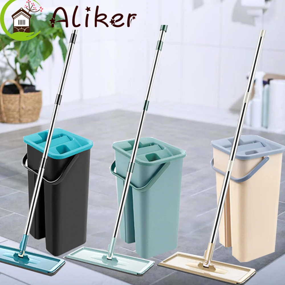 Швабра с ведром для мытья пола, плоская Швабра из нержавеющей стали...