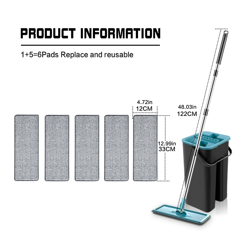 Напольная швабра Бытовая отжимная швабра с ведром 4 или 6 сменных салфеток из микрофибры Ручная стирка Швабры с легким вращением на 360 градусов