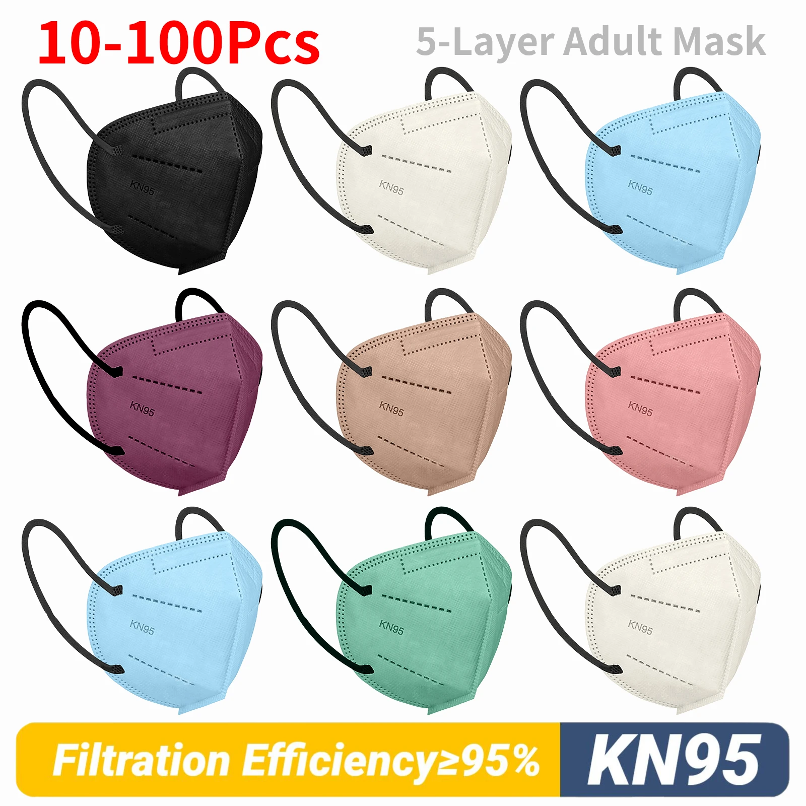 Маски для взрослых KN95 FFP2 10-100 шт. FFP2mask Mascarillas kN95 M...