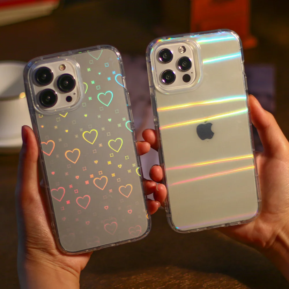 Голографический прозрачный чехол с сердцем для iPhone 11 Pro Max 12...