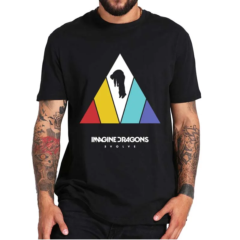 Футболка представляем драконов, Классическая футболка с логотипом американской поп-рок, 100% хлопок, европейский размер, с коротким рукавом для фанатов