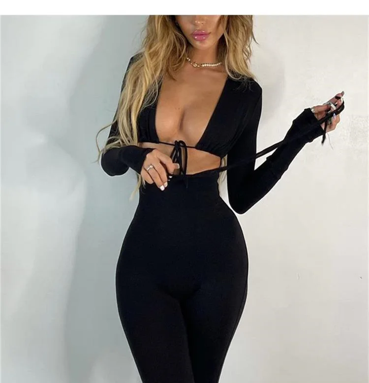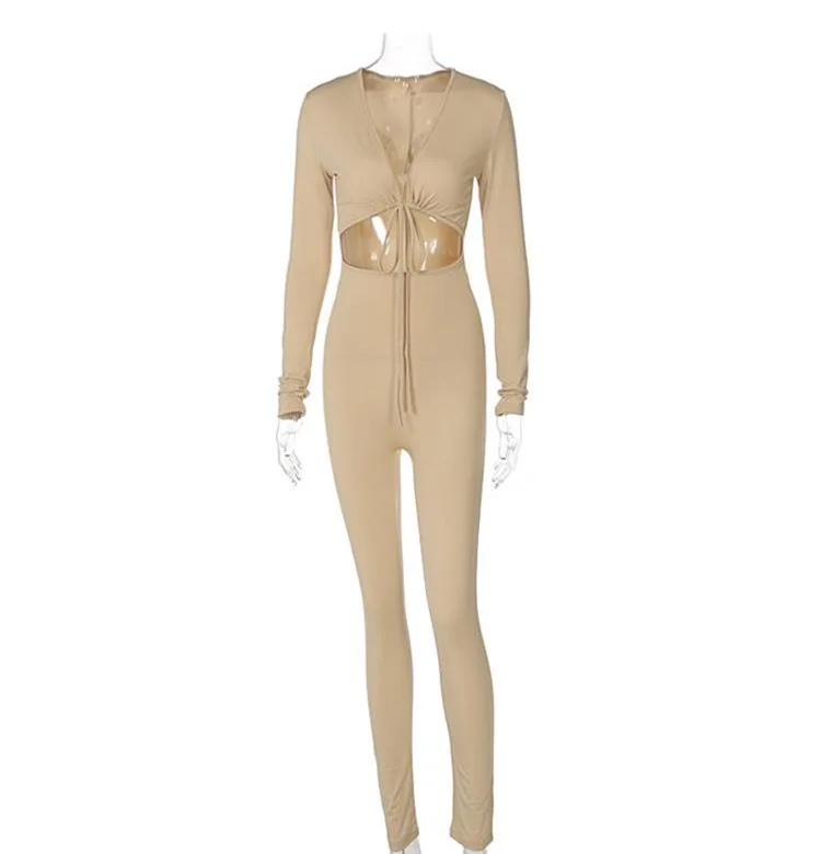 Женский комбинезон на шнуровке CNYISHE, повседневный Облегающий ком...