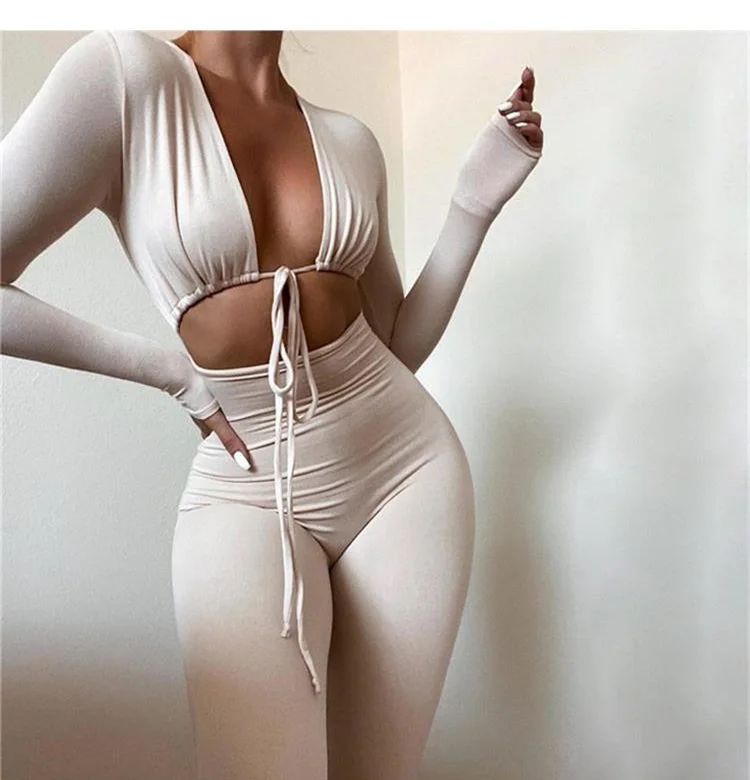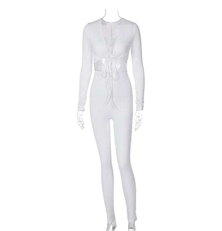 Женский комбинезон на шнуровке, повседневный облегающий белый комби...