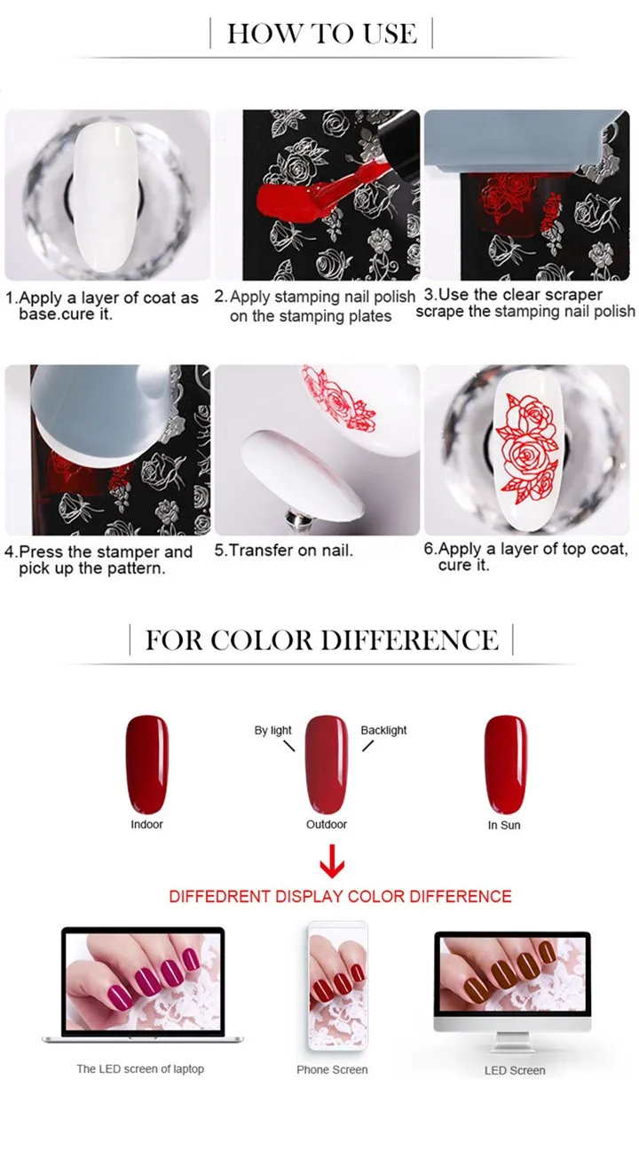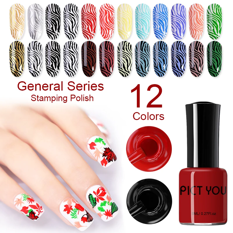 8 мл цветной штамповочный лак для ногтей черный белый красный лак для ногтевого дизайна печать своими руками дизайнерский Лак 12 цветов s нюдовый лак для ногтей