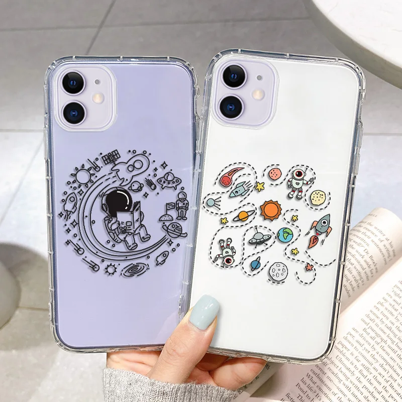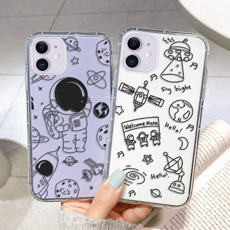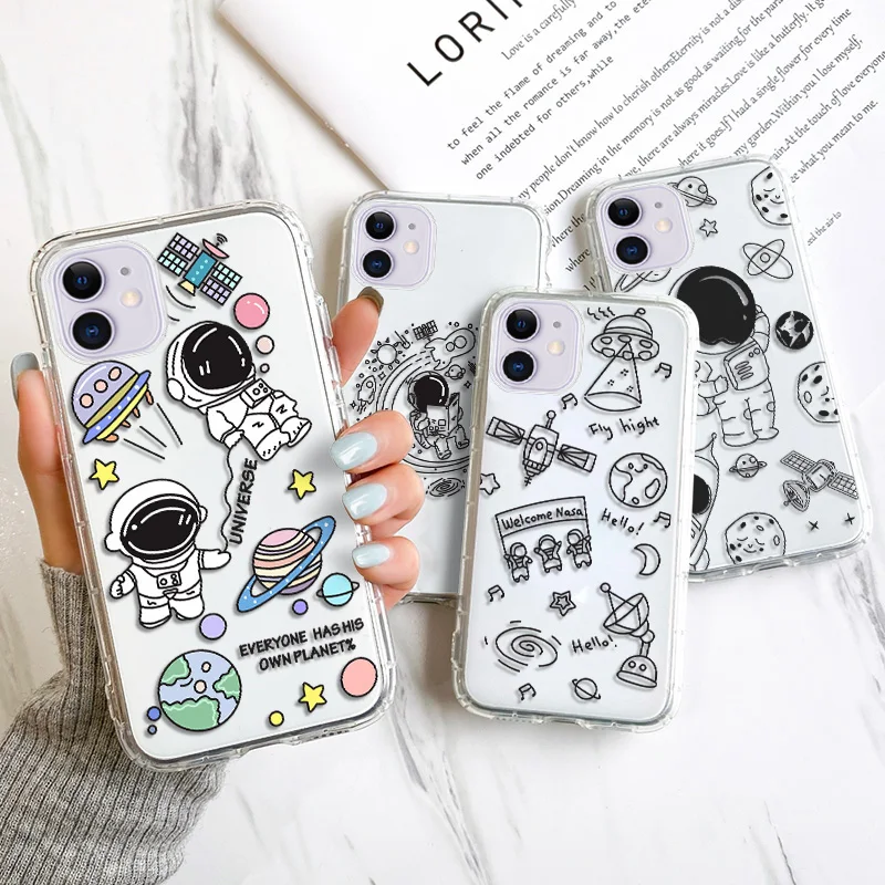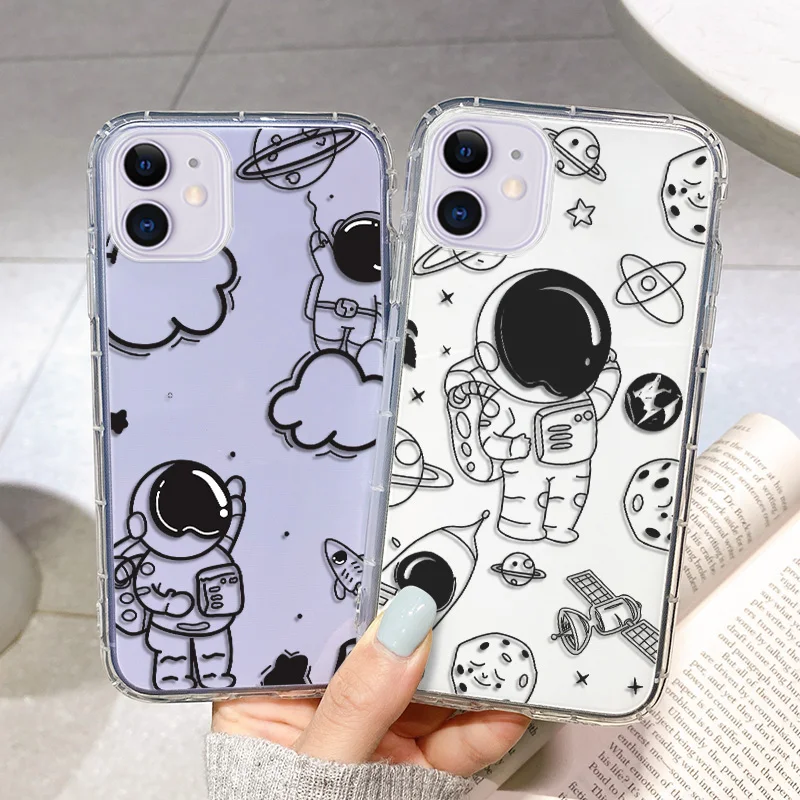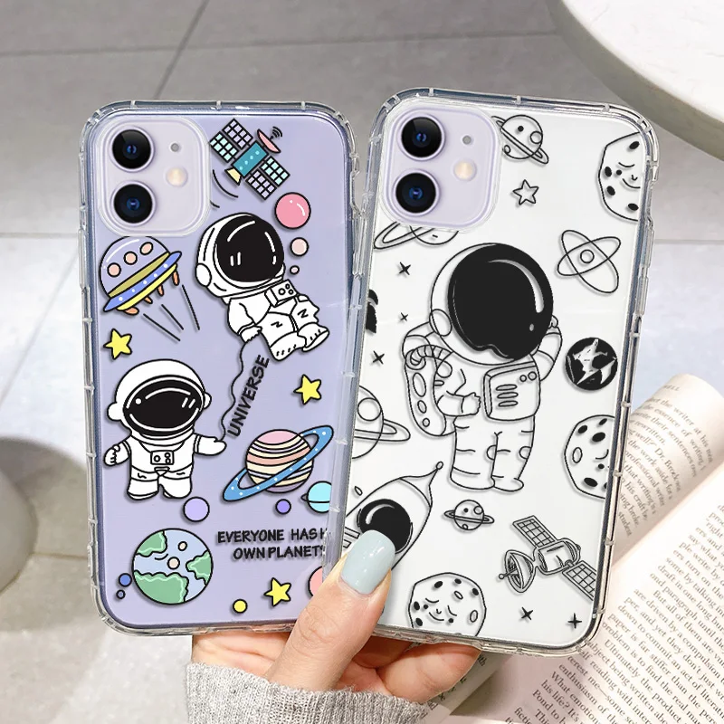 Cartoon Spaceman Astronaut Case For iPhone13 11 13 Pro Max Clear Cover
