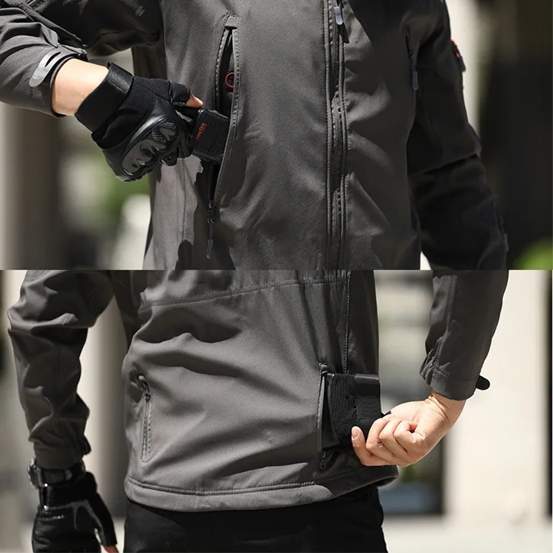 Мужская куртка из мягкой кожи акулы, тактическая ветрозащитная водо...