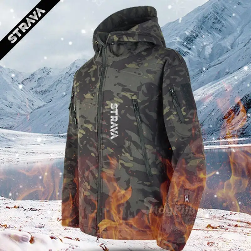 Куртка мужская с капюшоном, флисовая Водонепроницаемая теплая камуф...