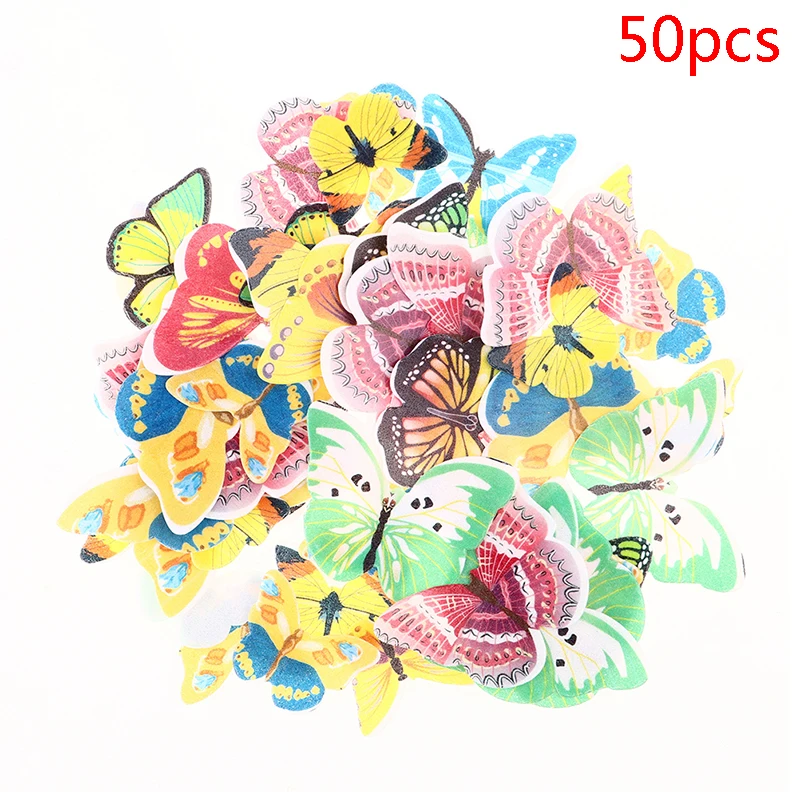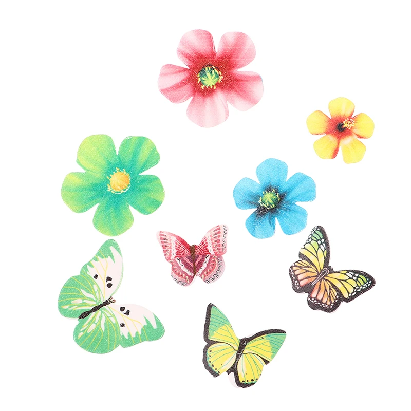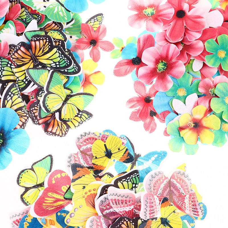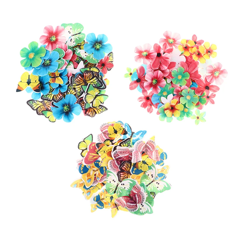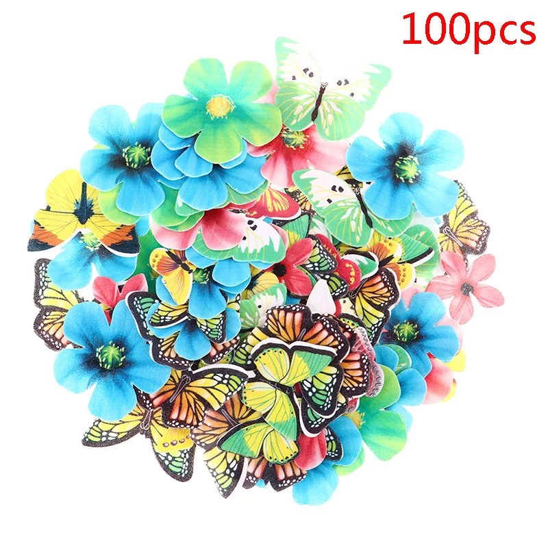 50100 шт. смешанные съедобные цветы и бабочки, вафли, рисовые бумажные топперы для торта, день рождения, строительный инструмент, кухонные аксессуары
