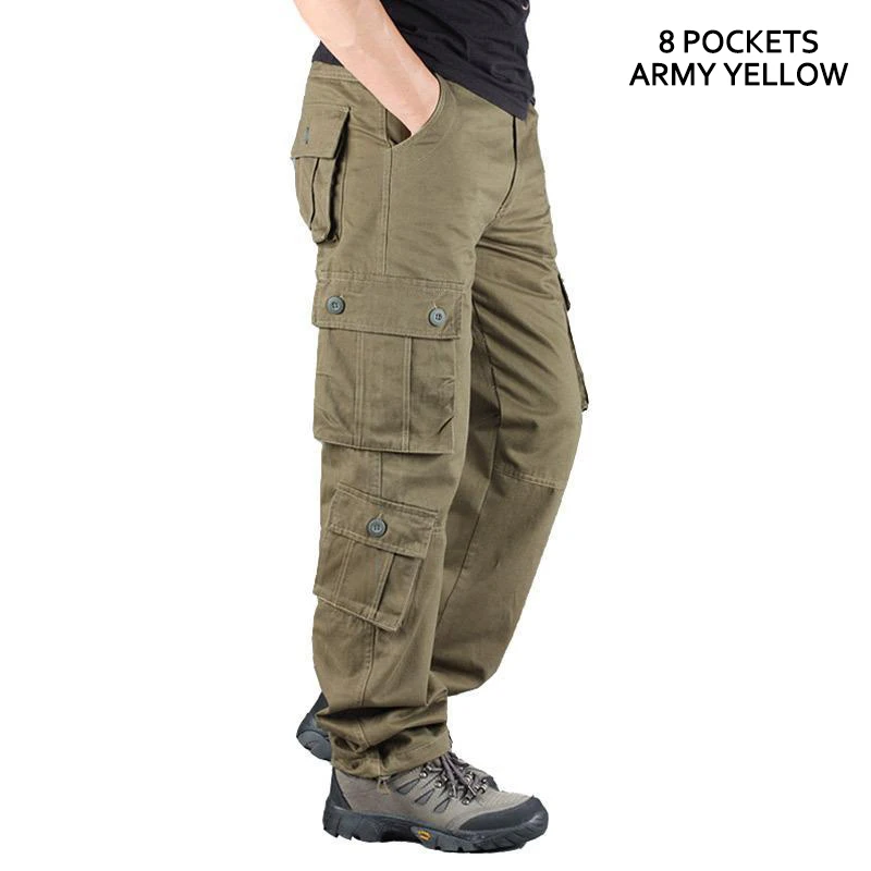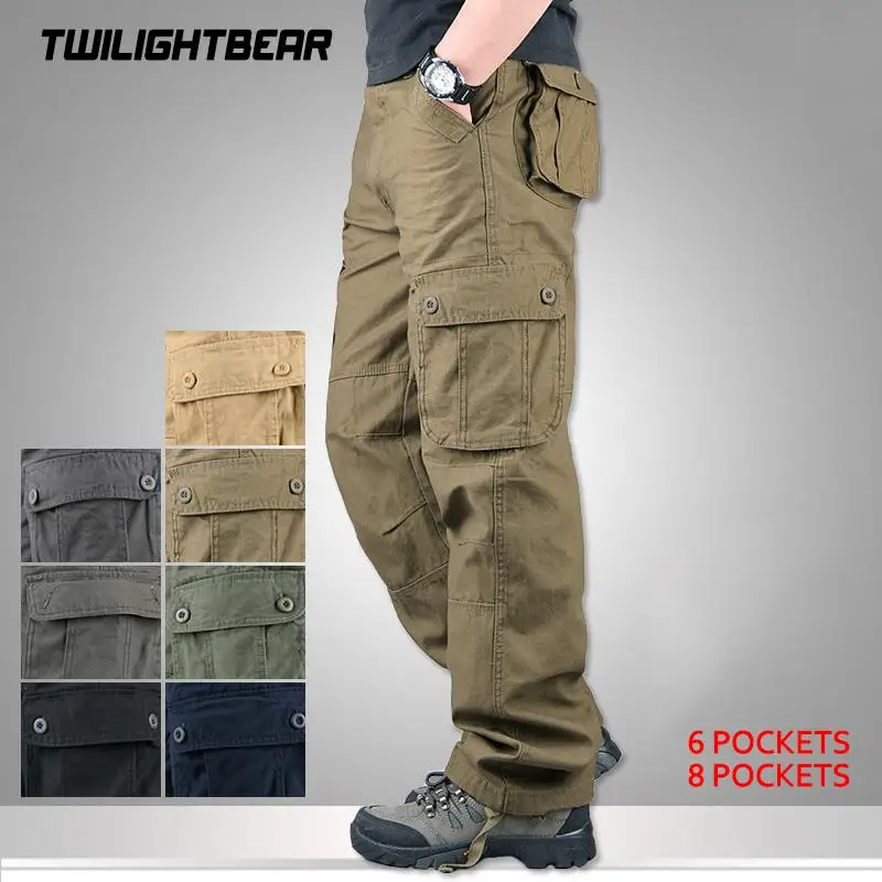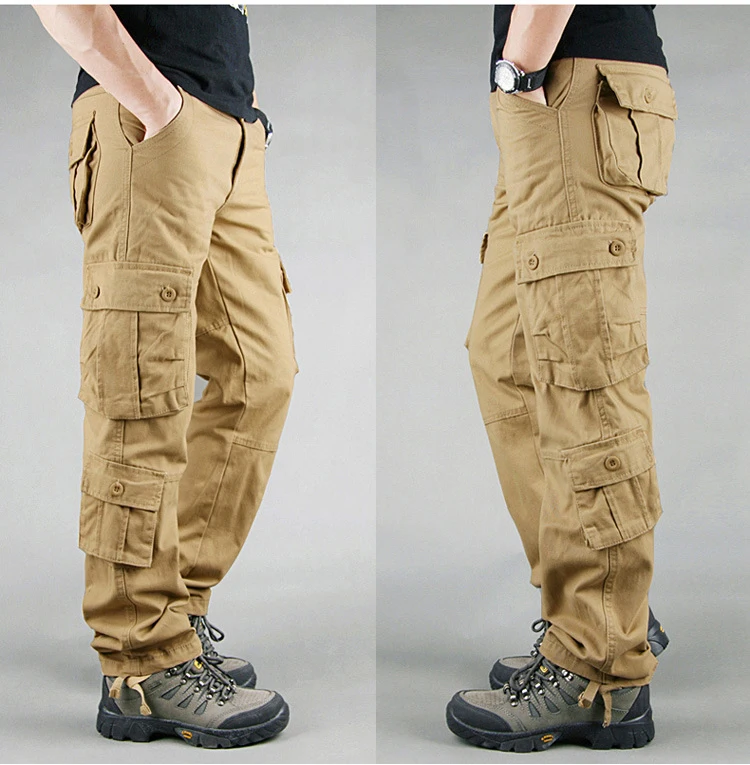 Мужские брюки-карго с несколькими карманами, оверсайз, мужские комбинезоны, уличная одежда, однотонные хлопковые повседневные штаны, Мужская одежда, рабочие брюки для кемпинга