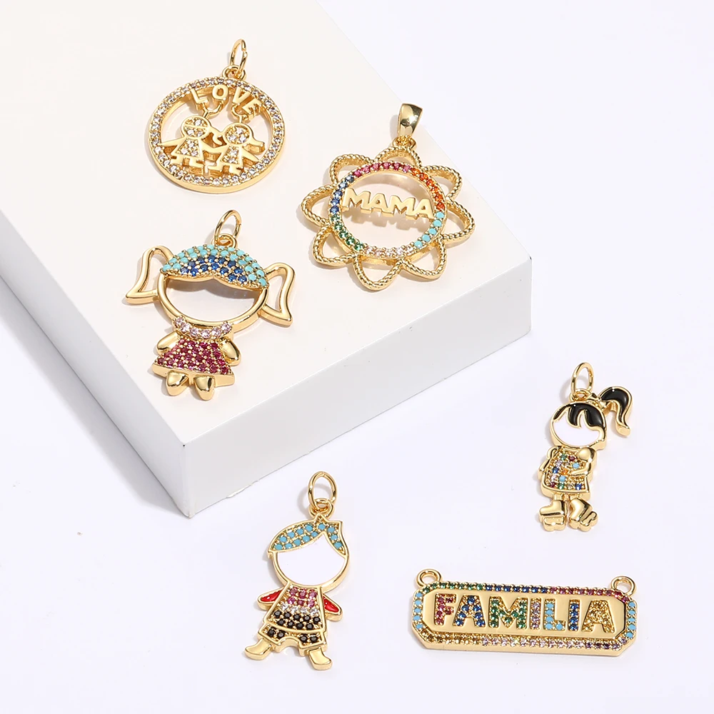 Подвески для изготовления ювелирных изделий, изящные украшения для семьи матери, с буквами пар, с настоящим позолоченным кристаллом и кубическим цирконием, сделай сам, серьги, ожерелье, браслет