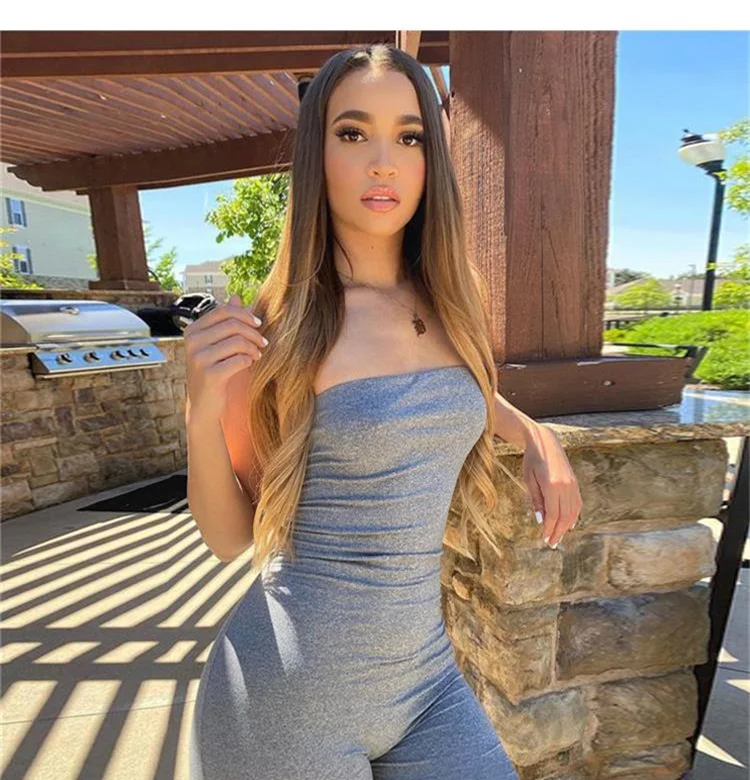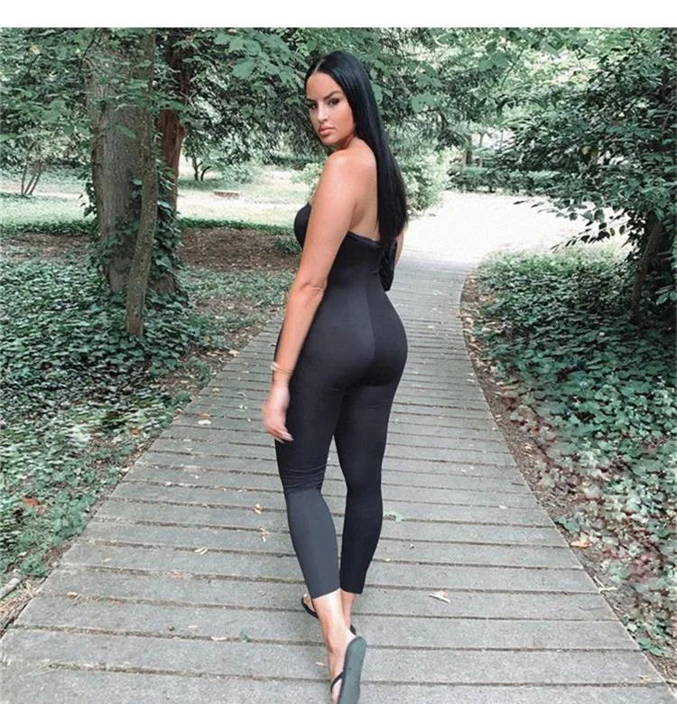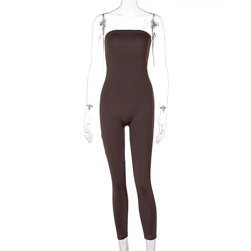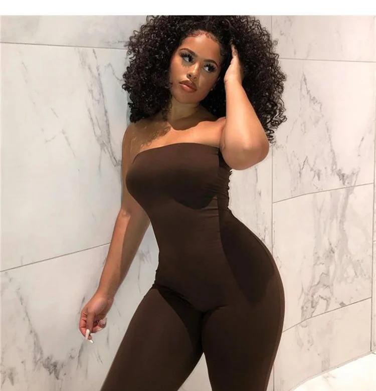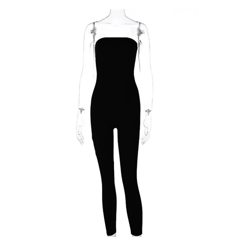 Женский комбинезон без бретелек, однотонный Облегающий комбинезон с...