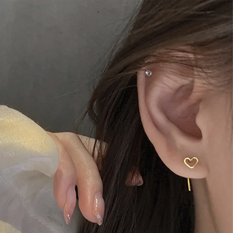Простые полые серьги-гвоздики в форме сердца, минималистичные корейские модные Эффектные серьги, милые ювелирные изделия в стиле панк, аксессуары для вечеринки, подарок 2022