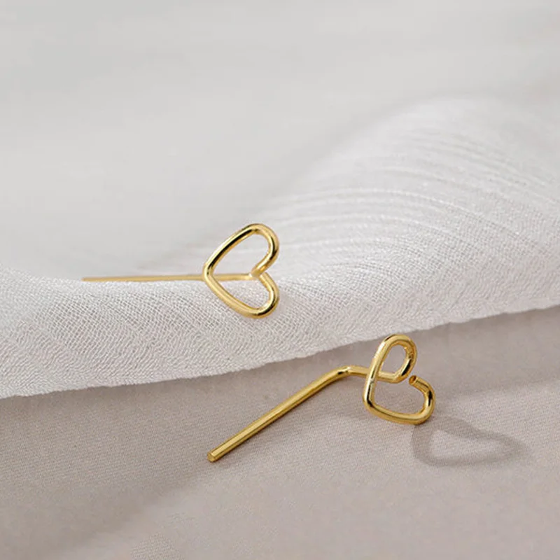 Минимализм полые серьги-гвоздики с сердечками