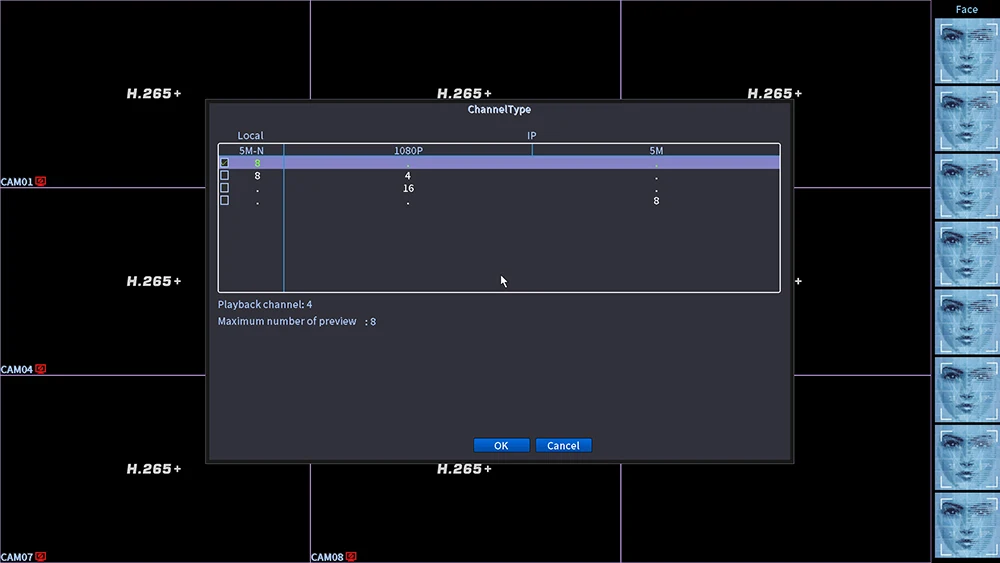 8CH цифровое меню (8CH поддерживает только AHD 5MP-N,XVI 5MP камеру, не поддерживает AHD 5MP камеру)