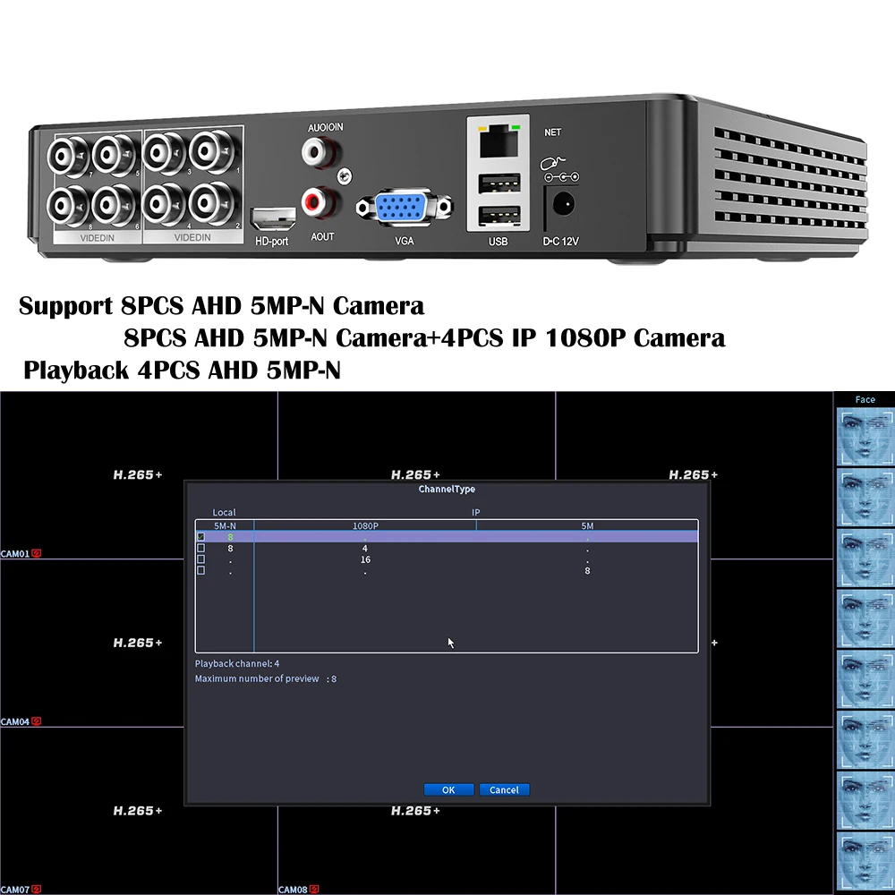 Гибридный видеорегистратор для систем видеонаблюдения, H.265 + 8CH4CH 5M-N HVR, поддержка AHDTVICVICVBSIP-камер Xmeye Pro NVR