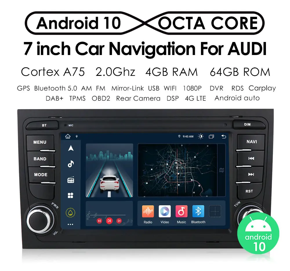 Автомагнитола на Android 10, мультимедийный стерео-проигрыватель для Audi A4 B6 2000-2006 S4 B7 RS4 Seat Exeo, видео GPS навигация Carplay RDS