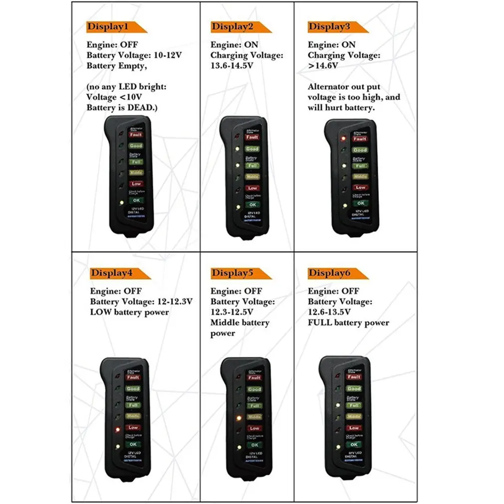 Автомобильный тестер батареи 12 В светодиодный светильник Автоматический цифровой тестер для зарядки генератора для автомобильного мотоцикла автомобильный тестер детектор неисправностей инструмент