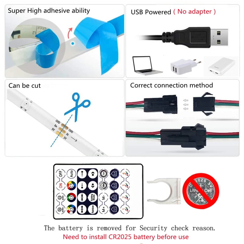 30 м светодиодный светильник WS2812B Bluetooth RGB 5050 USB Диодная Гибкая лампа с возможностью адресации лента Радужный эффект DC 5V потолочный светильник