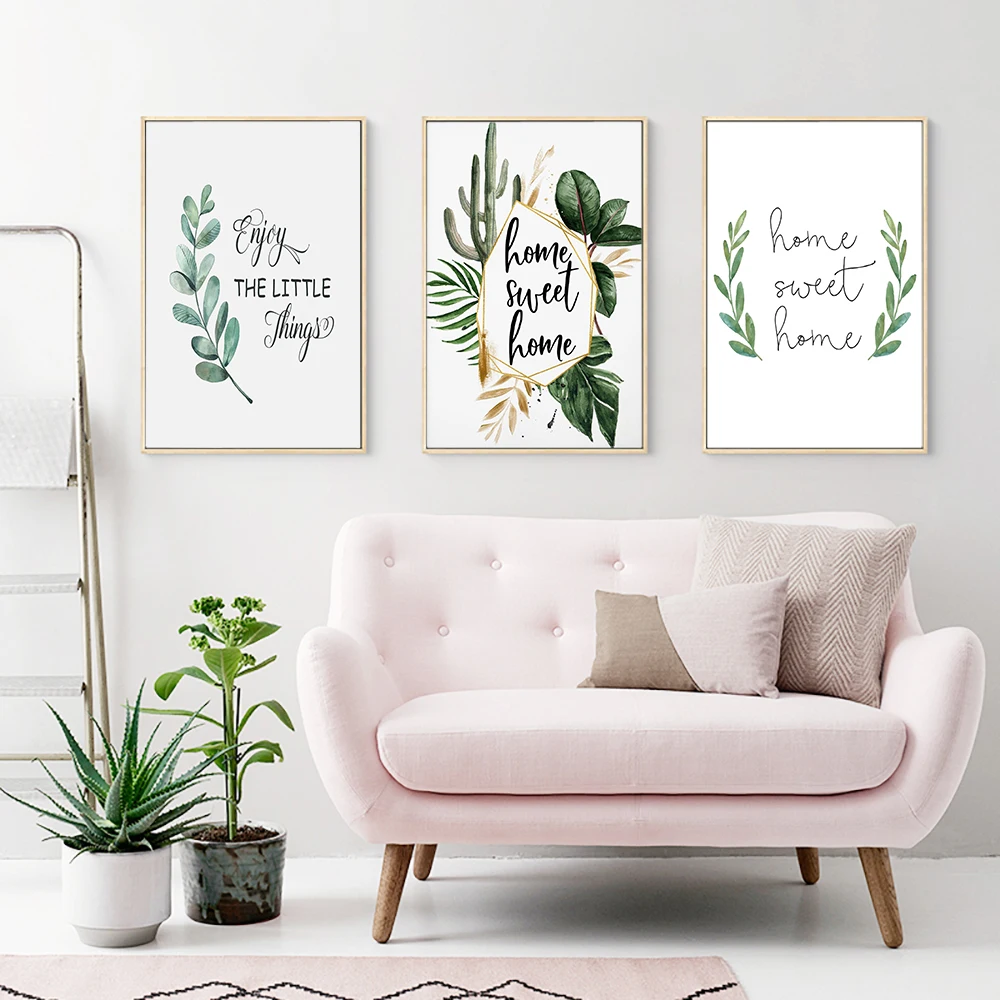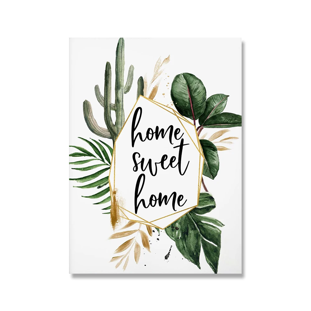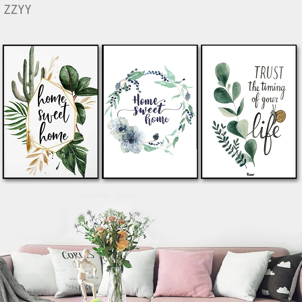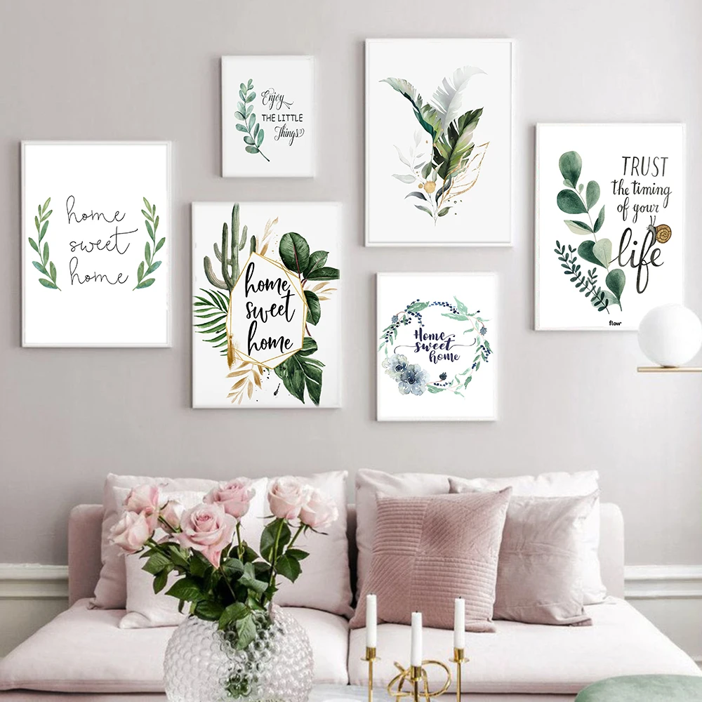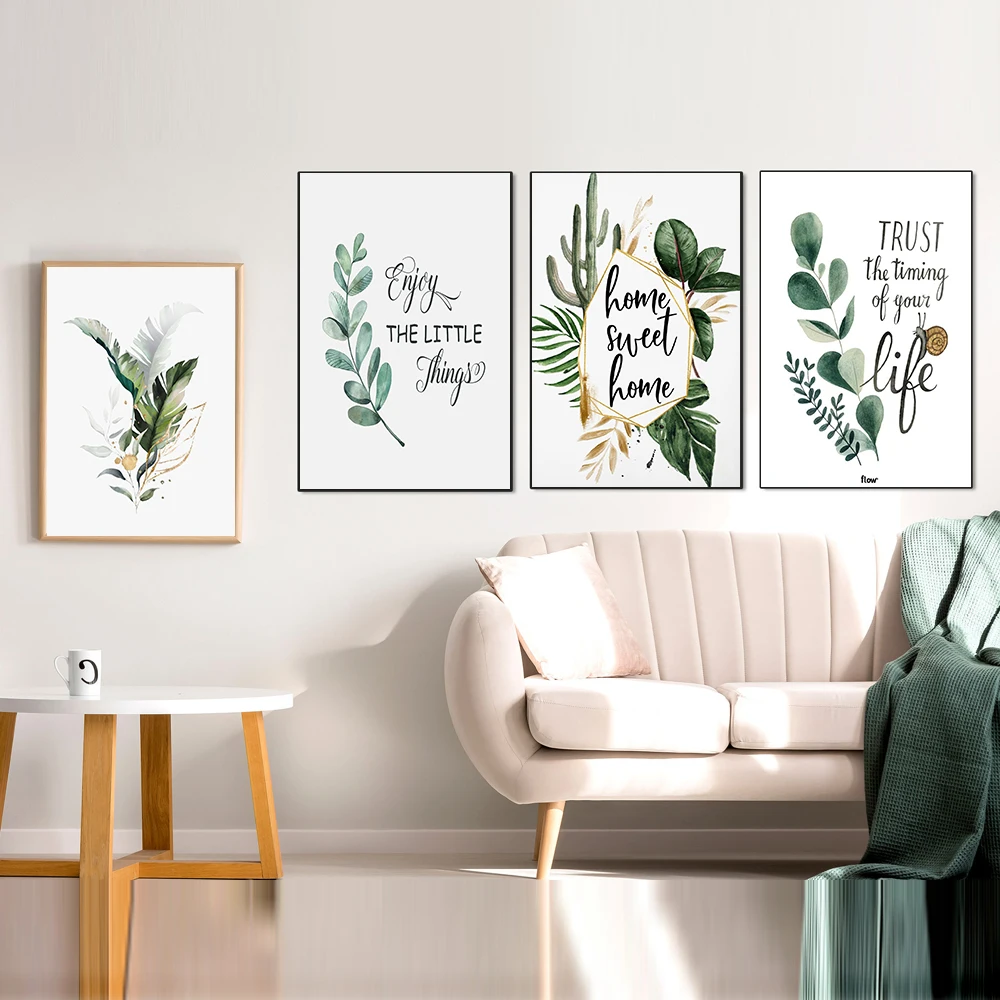 Современный домашний постер с цитатами, листья гренана, холст с рис...