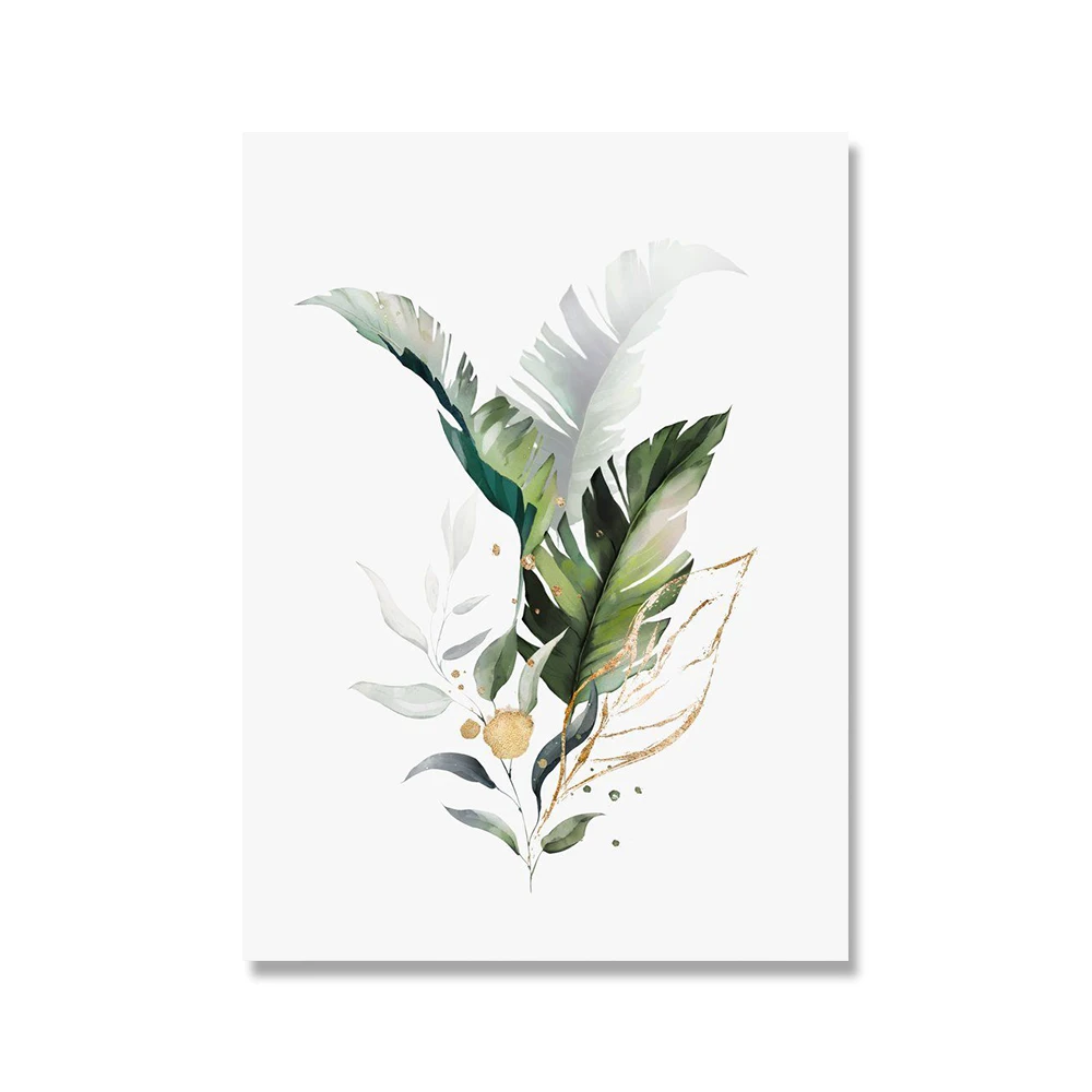 Картина на холсте, с зелеными листьями, для домашнего декора