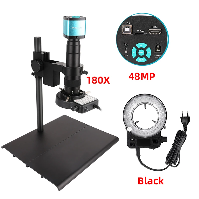 1 * комплект камеры (HDMI USB 48MP 4K 60Fps)1 * Светодиодный кольцевой светильник (черный)1 * 180X зум-объектив1 * кронштейн микроскопа (29 см * 29 см * 26 см)