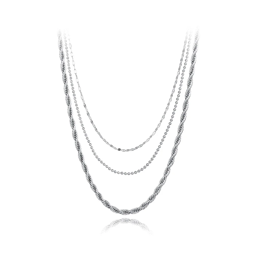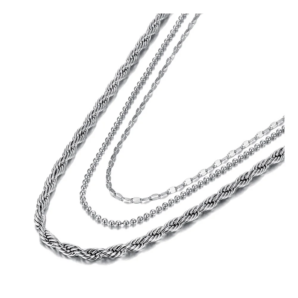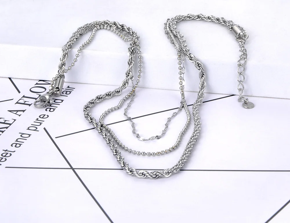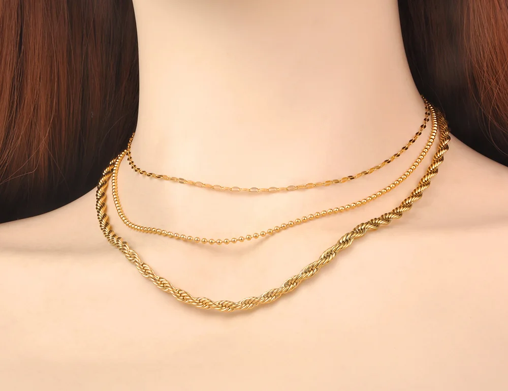 Ожерелья Lokaer в стиле хип-хопрок из нержавеющей стали с тремя искусственными ожерельями, золотистые витые искусственные ожерелья 18 карат для женщин N21248