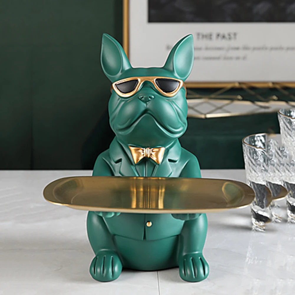Скульптура для классной собаки из смолы, декоративная фигурка бульдога, поднос для хранения монет, банка, вход, ключ, снэк-держатель, современное искусство, статуя, украшение для дома, рабочего стола