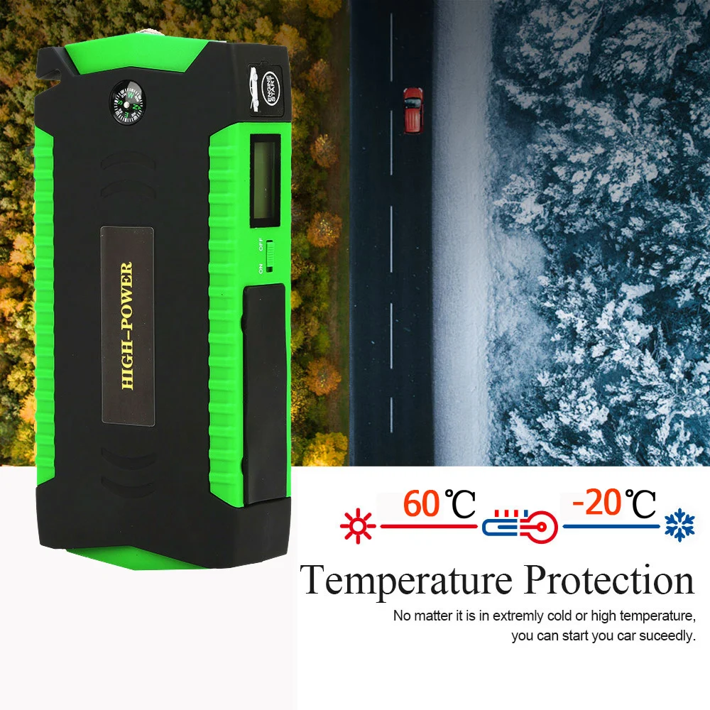 Высокомощный автомобильный стартерБыстрый запуск 12V бензиновый автомобиль (до 5.0L) и дизельный автомобиль (до 3.0L) за считанные секунды в тех случаях, когда автомобильного аккумулятора. Когда вы путешествуете в небольшом месте, и ваш автомобильный аккумулятор не работает, вы можете использовать этот автомобильный стартер для запуска вашего автомобиля.