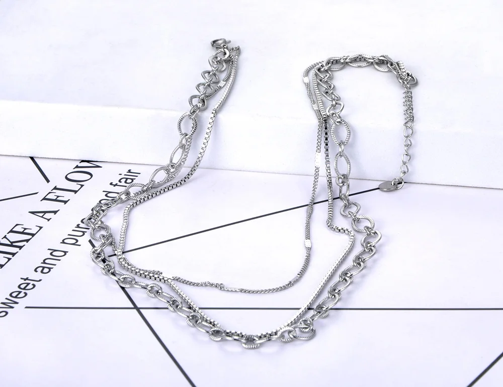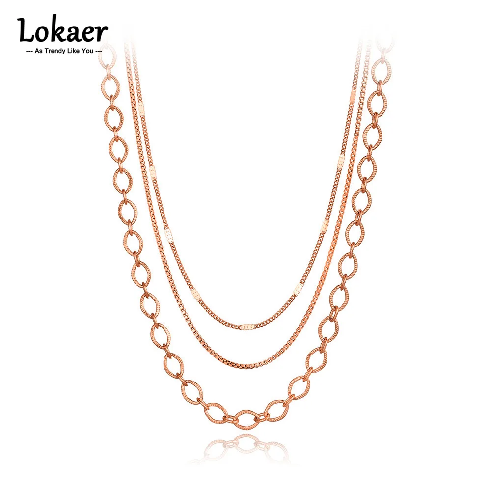 Ожерелье Lokaer из нержавеющей стали в стиле хип-хопрок с тремя звеньями, ожерелье с цепочкой из розового золота 18 карат и звеньями в коробке для женщин N21249