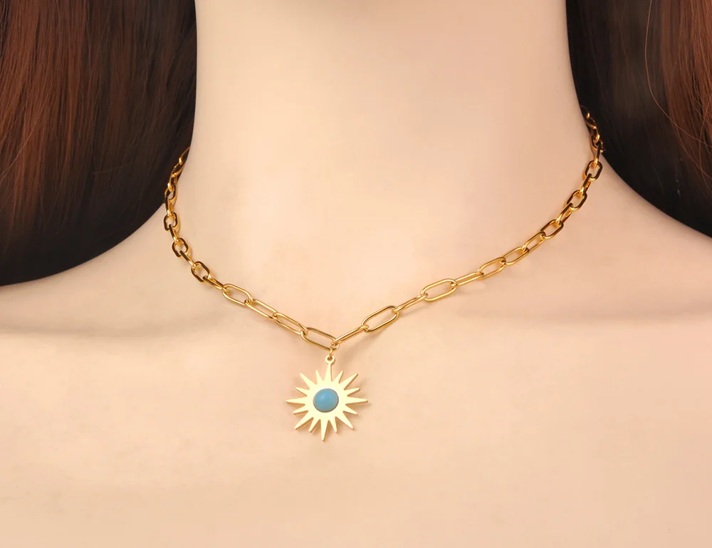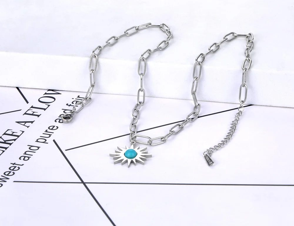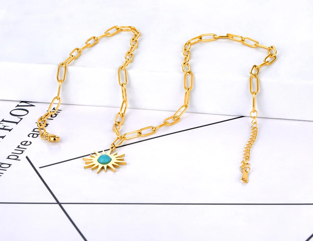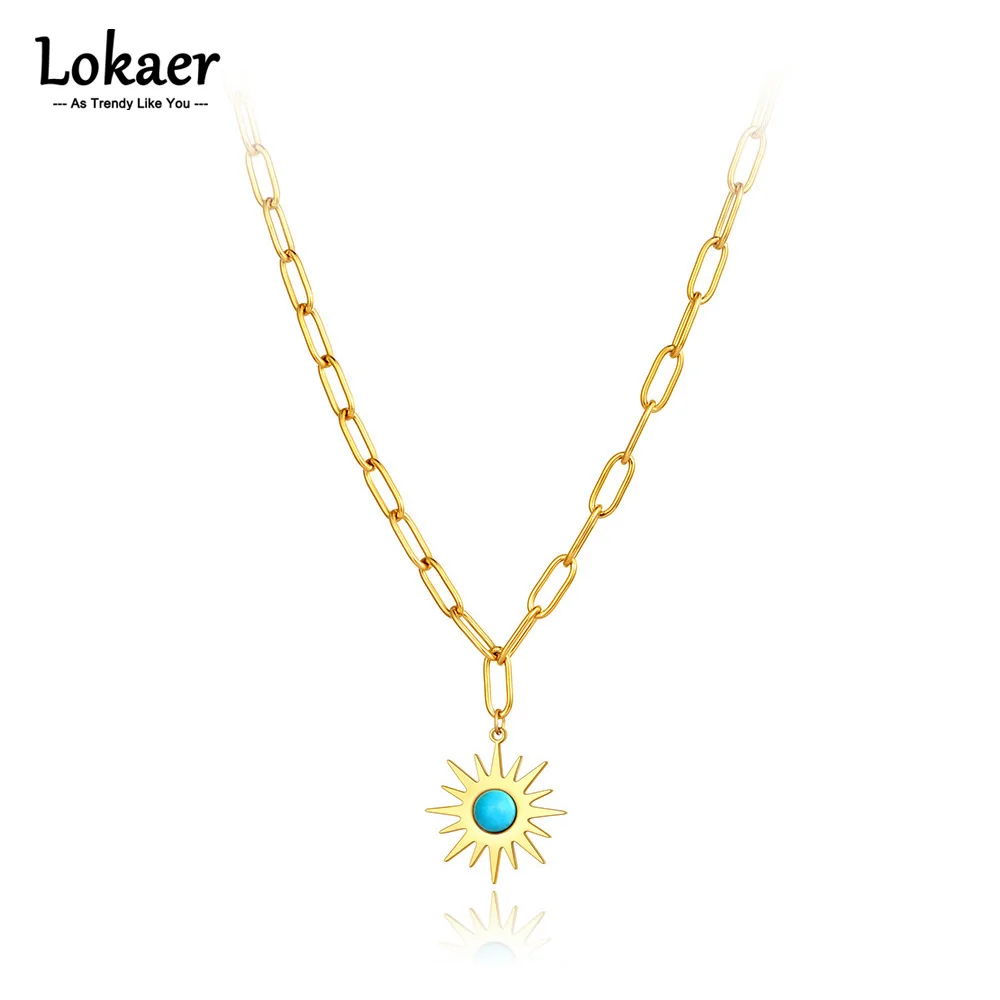Женское Ожерелье-чокер Lokaer, цепочка из нержавеющей стали цвета 18-каратного золота с бирюзовым подвеской в виде подсолнуха, чокер в богемном стиле для вечерние, N21250