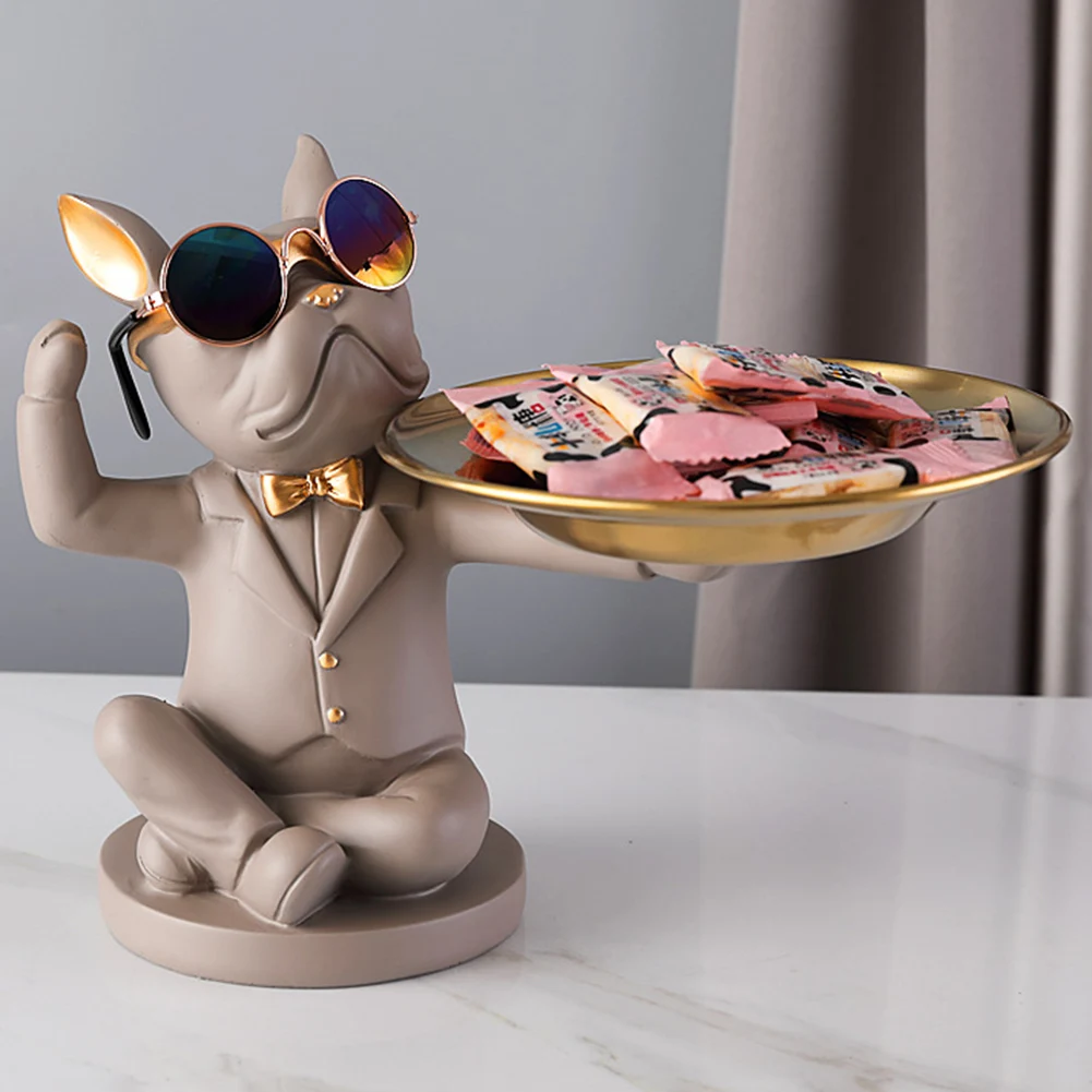 Скульптура бульдога, статуя из смолы, украшение собаки, веранды, шкаф с подносом для хранения ключей, светильник, идеи для украшения дома и бара