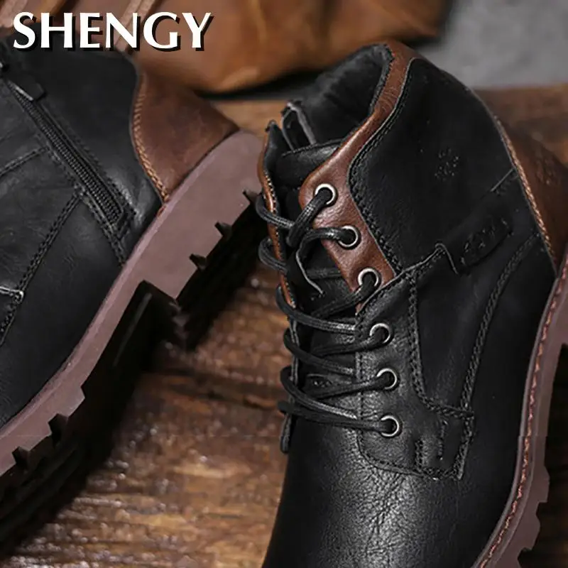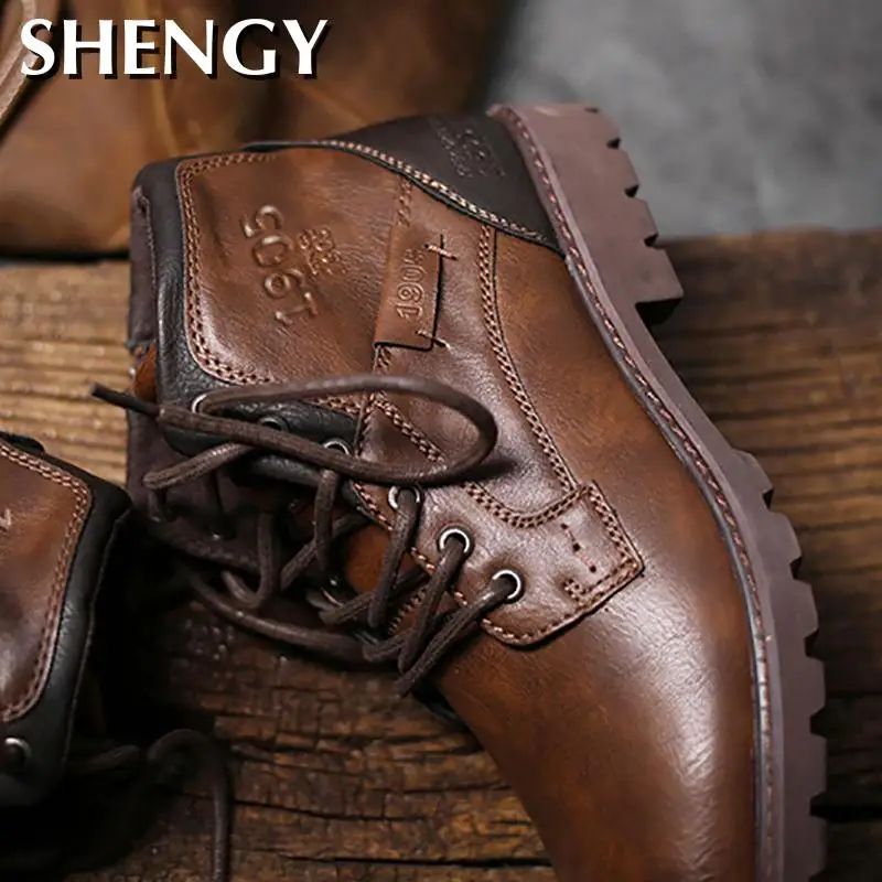 Мужская обувь 2022, зимние ботинки в стиле ретро, ботильоны из искусственной кожи на шнуровке, повседневные ботинки с высоким берцем, мужская обувь, износостойкая обувь, ботинки