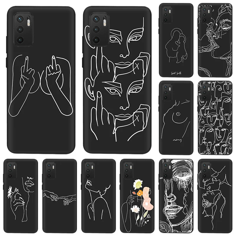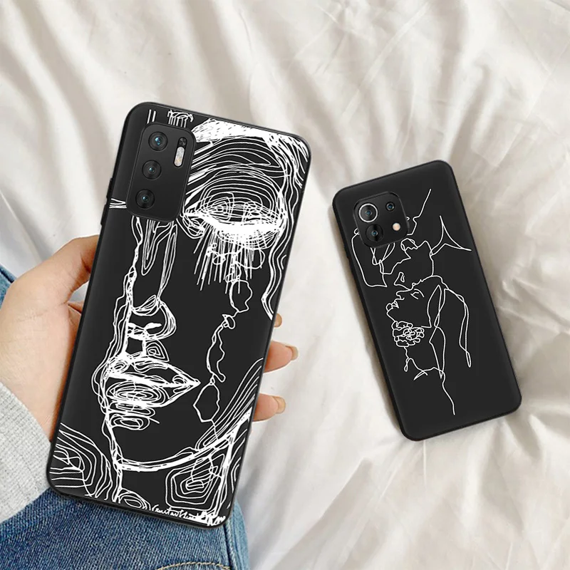 Чехол для телефона Xiaomi Redmi Note 11910 Pro Max 5G 8T9T9s78A9C7a9A8, абстрактная линия, рисунок, поцелуй, боди-лицо, искусство, мягкий чехол