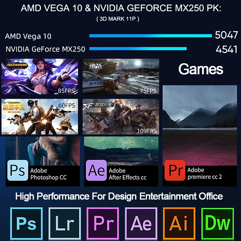 Игровой ноутбук AMD Ryzen R7 2700U, 15,6 дюйма, 8 Гб LPDDR4 256 Гб ...