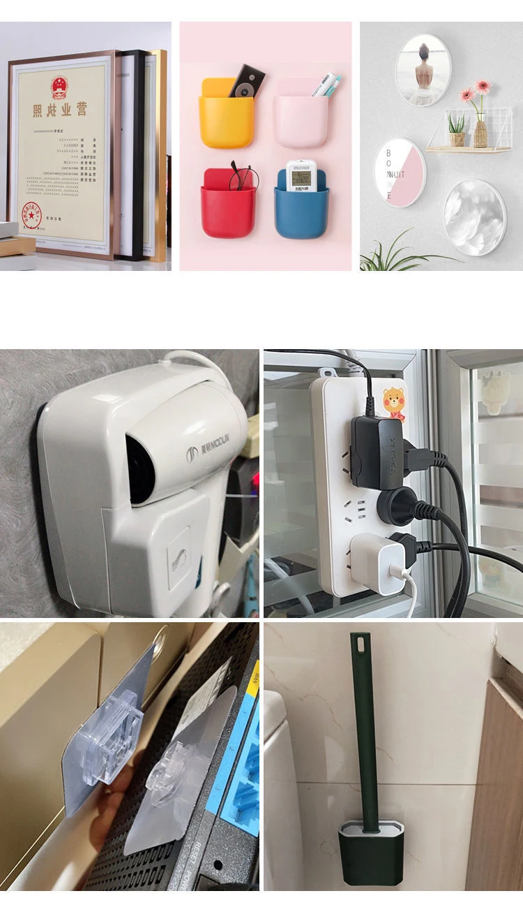 Характеристика:1. Высококачественные материалы: нет следов. Без остатков, хорошая эластичность и прочность, не легко оторвать, оторвать не оставит следов, не оставит стену чистой.2. Он прочный и стабильный; Клейкий лист имеет определенную степень гибкости, его площадь больше, чем само сиденье крючка, он прочнее и надежнее, чем любой крючок на рынке, поэтому нет необходимости беспокоиться о том, что он спадет.3. Хорошая устойчивость к погодным условиям: на несколько градусов ниже нуля зимой и на 40 градусов летом. Это не повлияет на его адгезию и остается твердым.4. Многоцелевой крючок: он широко используется в ванной, на открытом воздухе, на кухне и украшении, включая розетку, мусорную баночку, туалетную щетку, цветочный горшок, картинку и т. д.5. Супер водонепроницаемый: обычный клей-крючок будет падать при контакте с водой. Даже в воде, брызгах, влажных стенках, наши бесцельные крючки будут оставаться прочными.6. Функция: она специально разработана для семьи, отеля, отеля, офиса и так далее. Он подходит для твердой стены с плоским блеском, такой как керамическая плитка, металл и стекло.