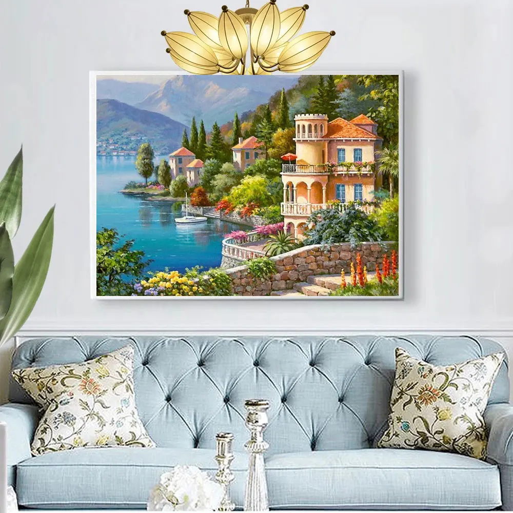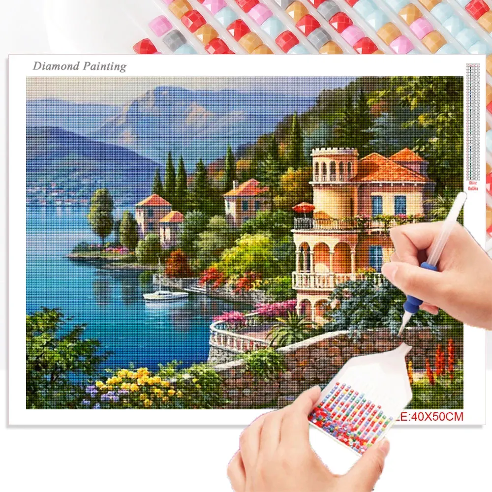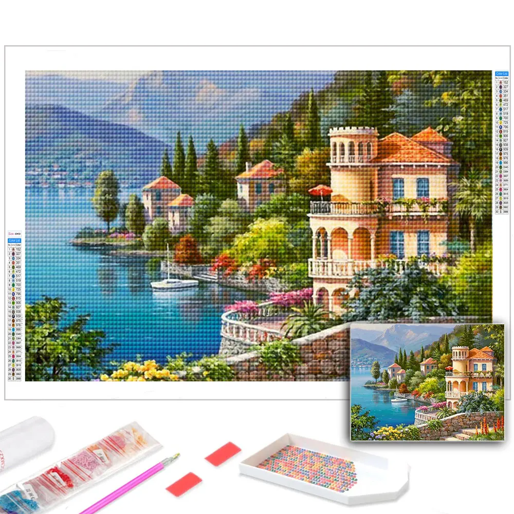 5D алмазная живопись ландшафт Виллы, полноразмерная Мозаика из смолы, пейзаж, алмазная вышивка, картина для дома, акварель