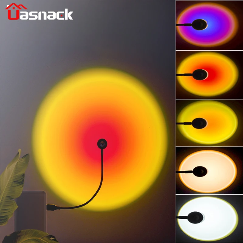 Радужный ночник с USB, лампа С закатом, атмосферный проектор, украшение для дома, светильник для фотосъемки в виде кофейни, светильник льник s