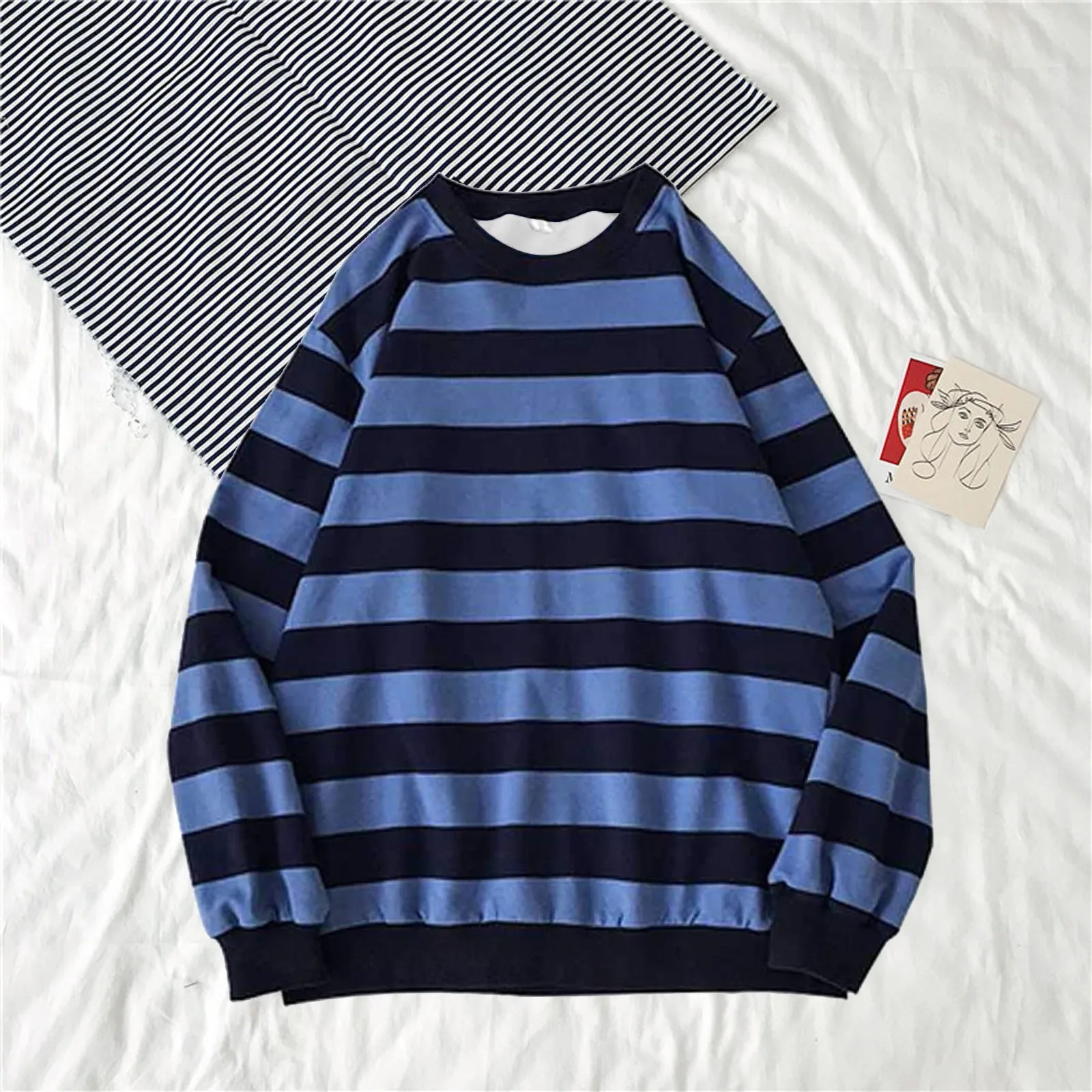 Осенне-зимние толстовки с круглым вырезом, Свитшот в полоску, пулов...