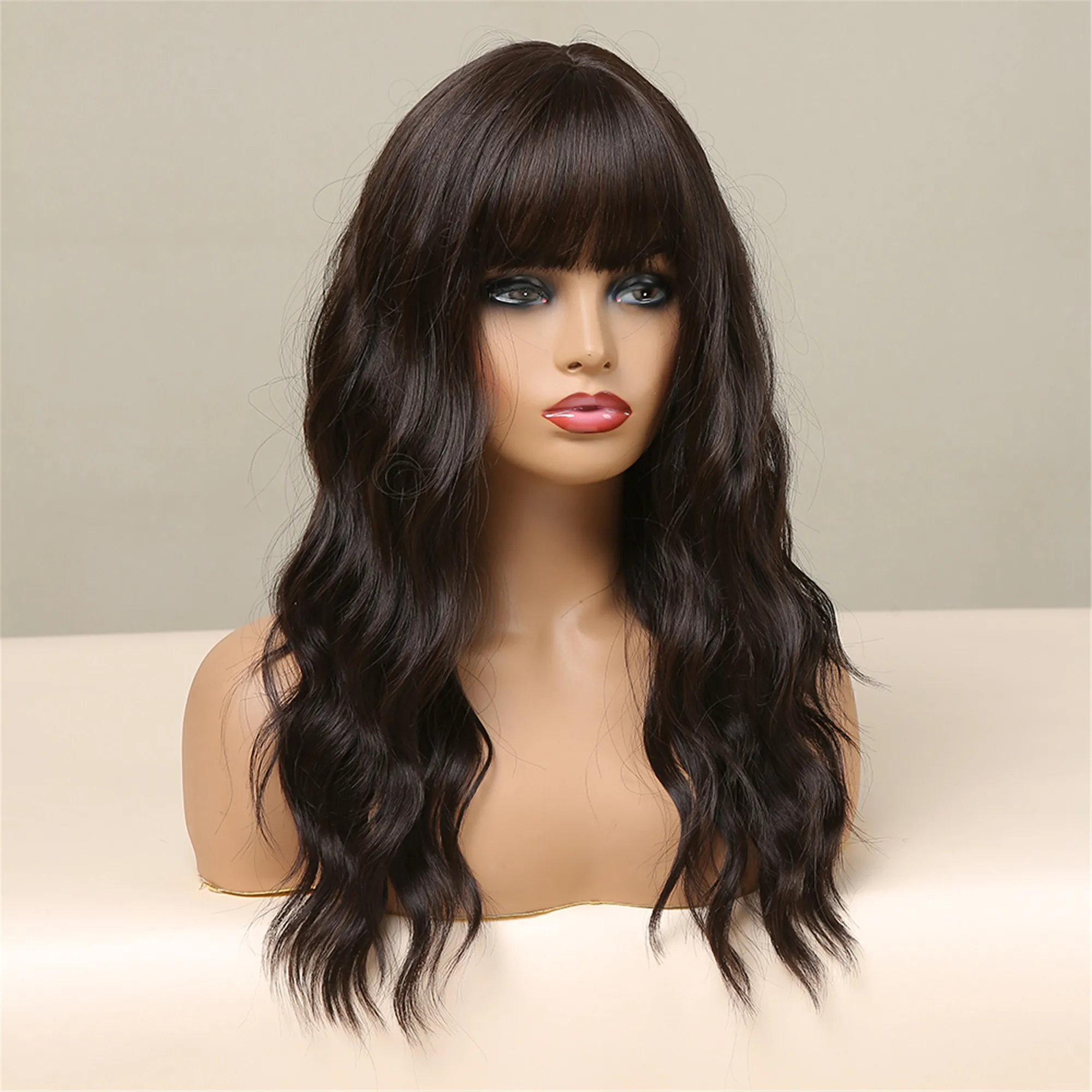 Натуральные темно-коричневые парики henmargu для чернокожих женщин, афро длинные волнистые синтетические волосы, парик с челкой для косплея, термостойкий парик