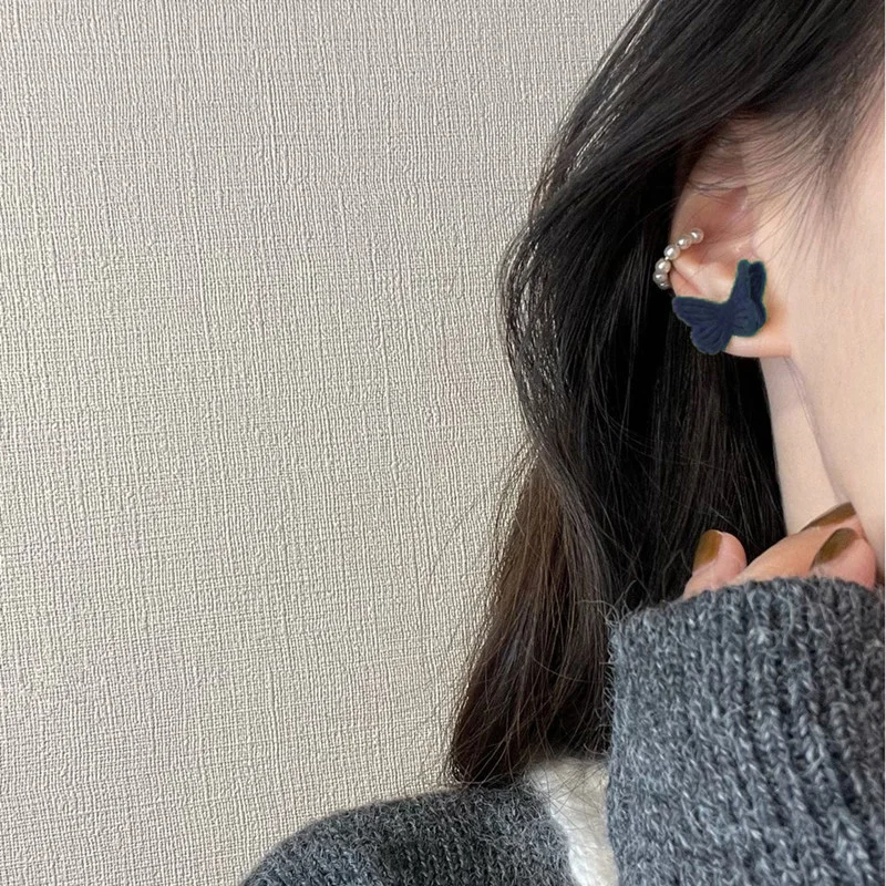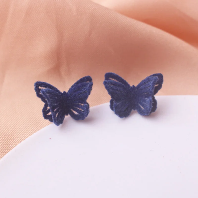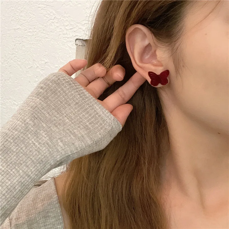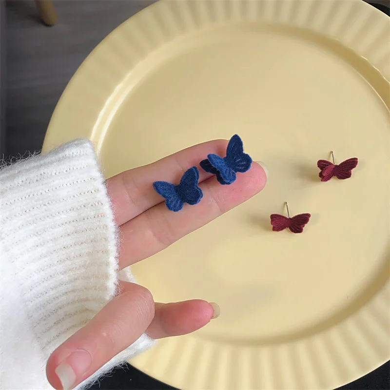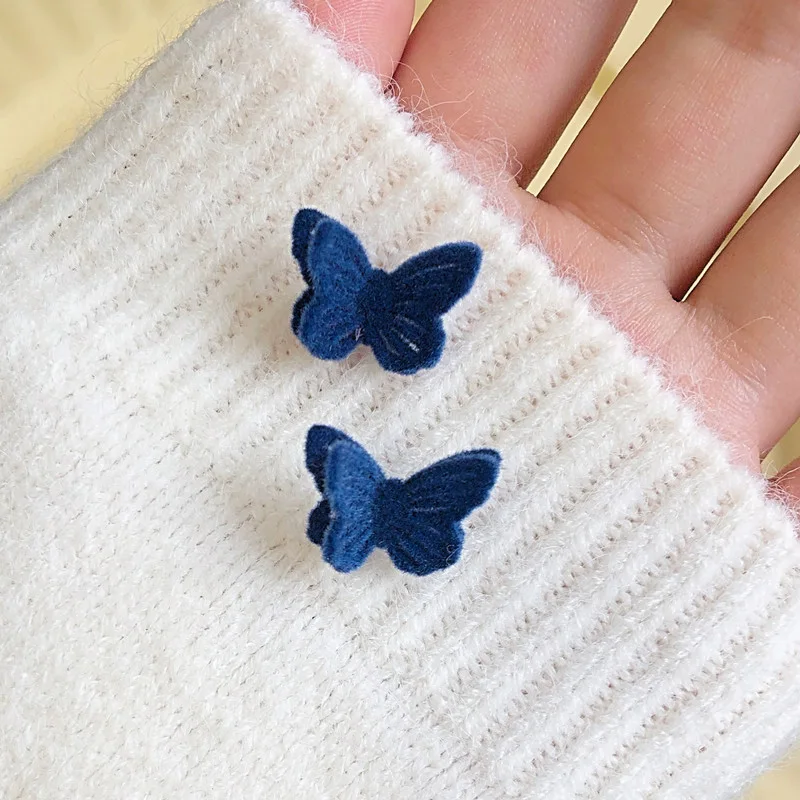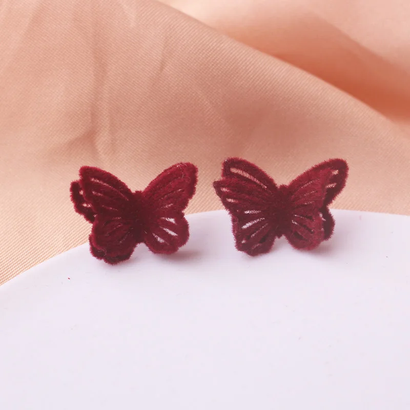 Серьги-гвоздики с бархатной бабочкой для девочек, модные корейские мини серьги с жемчугом, маленькие летающие складные серьги 2022, женские серьги
