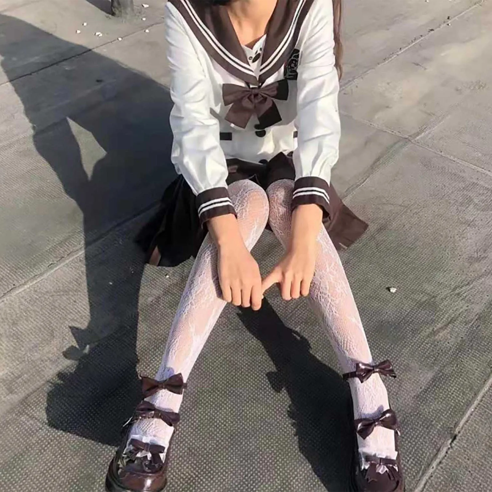 Женские колготки в японском стиле, летние нейлоновые колготки с рисунком, Женская сетка в стиле панк, белые черные колготки