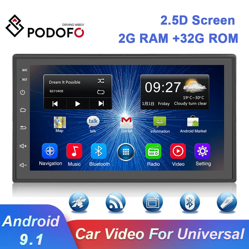 Автомагнитола Podofo, 2 din, Android 9,1, GPS, мультимедийный плеер