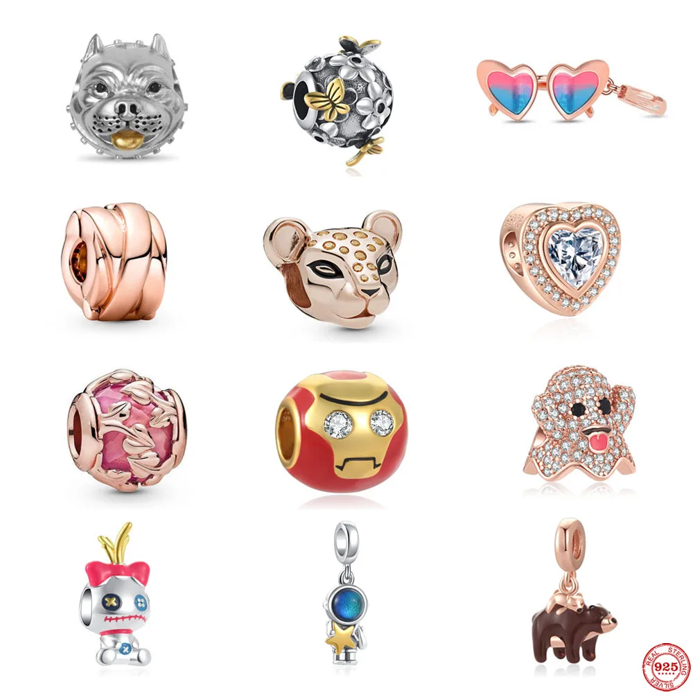 Европейский новый материал 2022 для изготовления ювелирных изделий, Роза, солнцезащитные очки, призрак, самодельные бусины, подходят для оригинальных браслетов Pandora, серебро 925 пробы